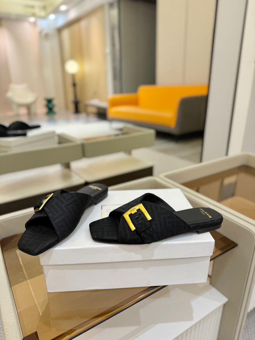 BALMAIN 26S SANDALS IN BLACK CANVAS
