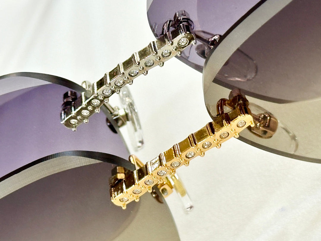 CRYSTAL STUDDED RIMLESS SQUARE FRAME SUNGLASSES CT0604S IN METAL