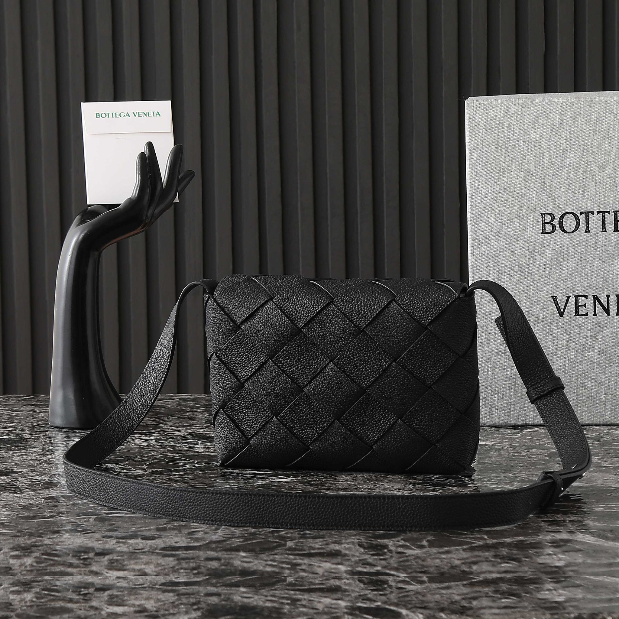 BOTTEGA VENETA 25S DIAGO 22 IN BLACK CALFSKIN SILVER HARDWARE