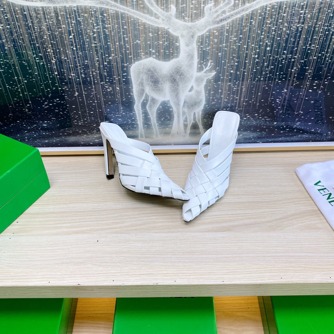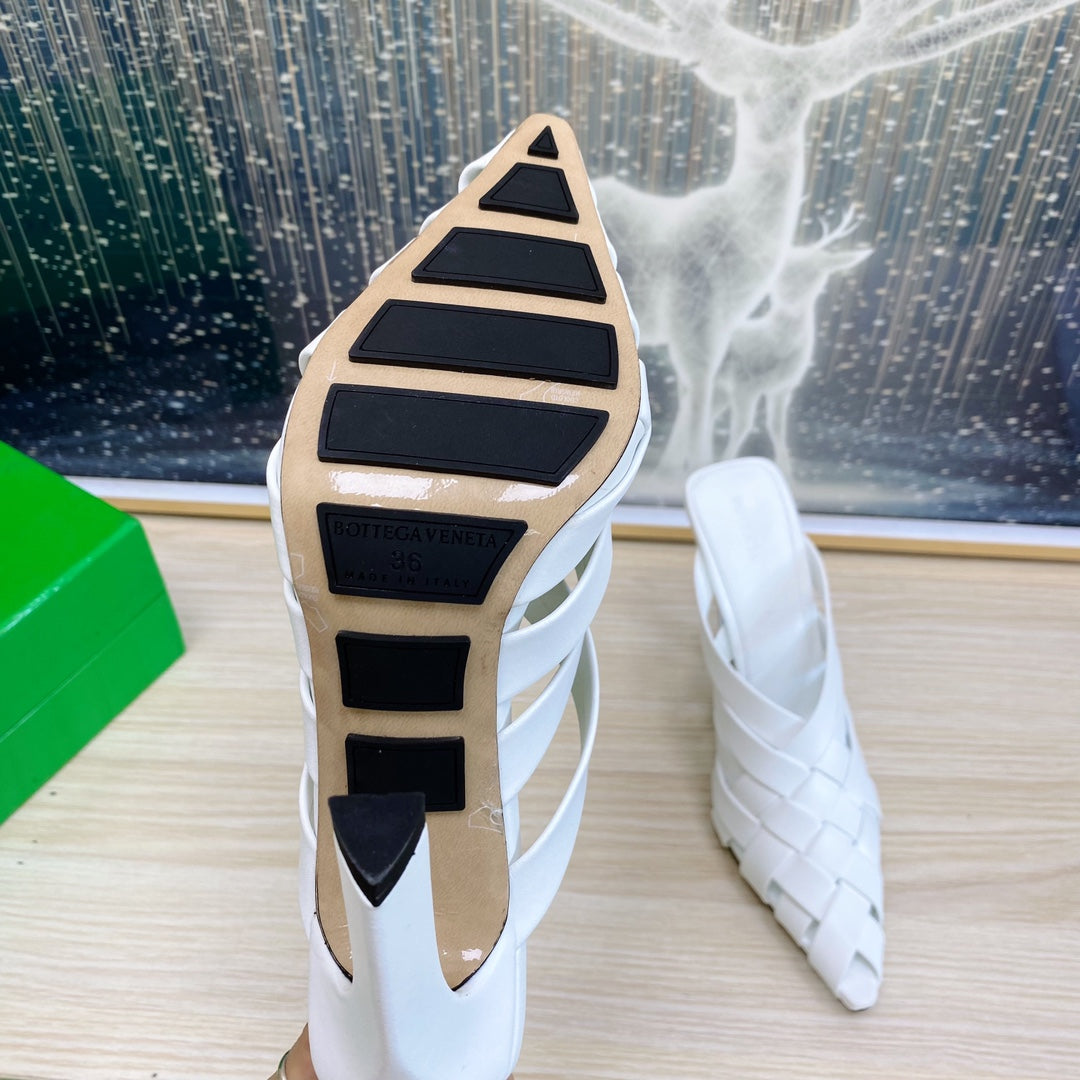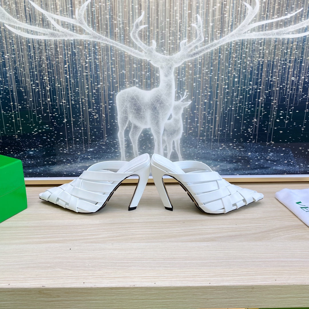 ALFIE LEATHER HIGH MULES IN WHITE CALFSKIN WITH WOVEN DESIGN