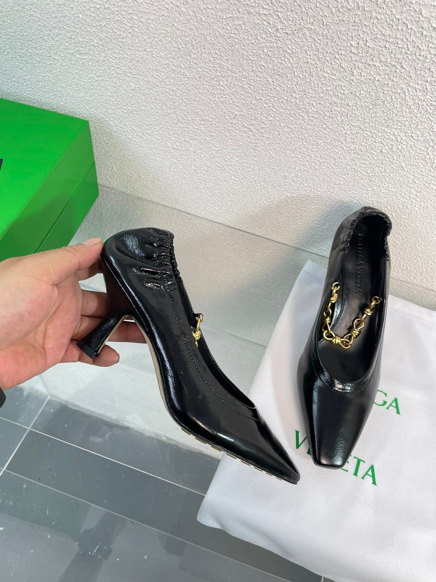 SHARP CHAIN PUMP 6 CM IN BLACK CALFSKIN