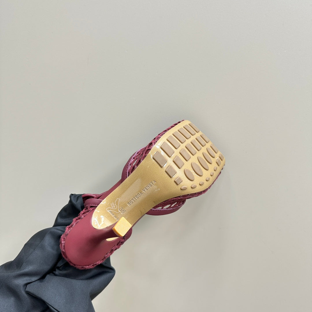 STRETCH HIGH HEELS 9 CM IN SANGRIA RED METALLIZE MESH AND LEATHER