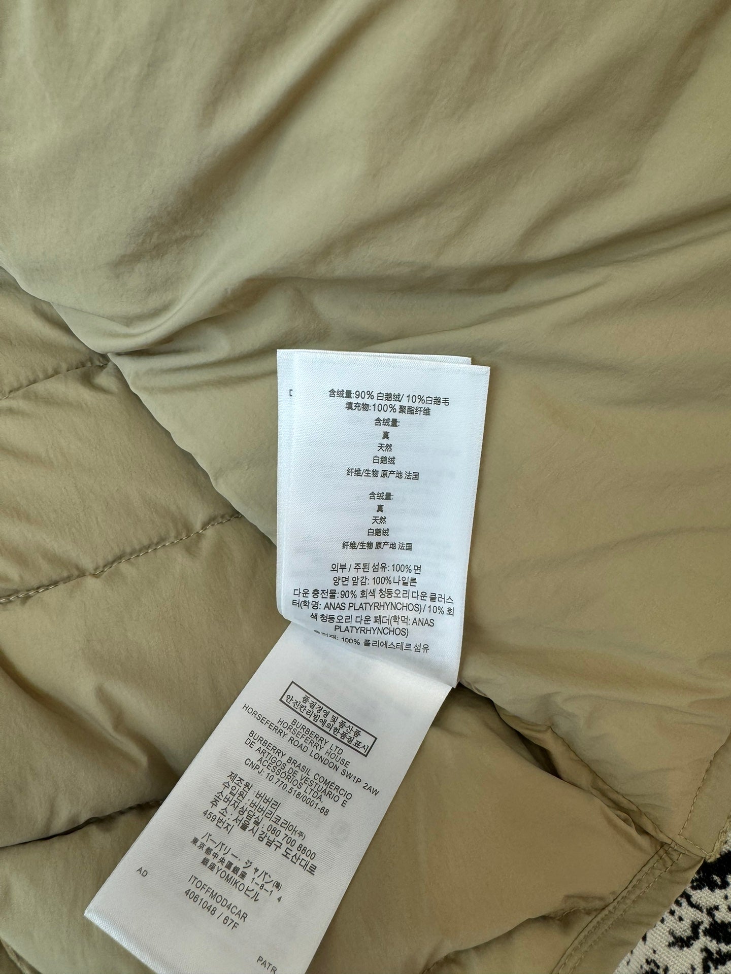 BURBERRY 25S SHORT DOWN JACKET 190