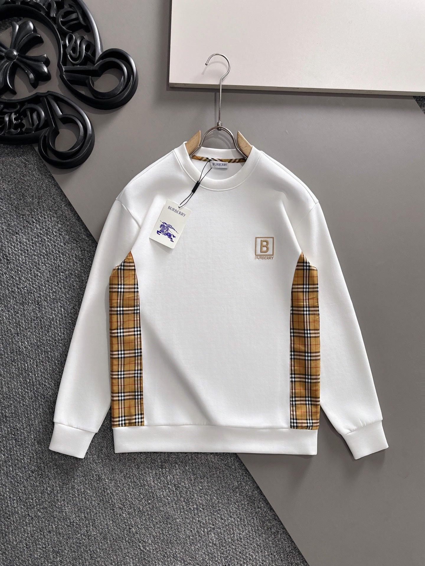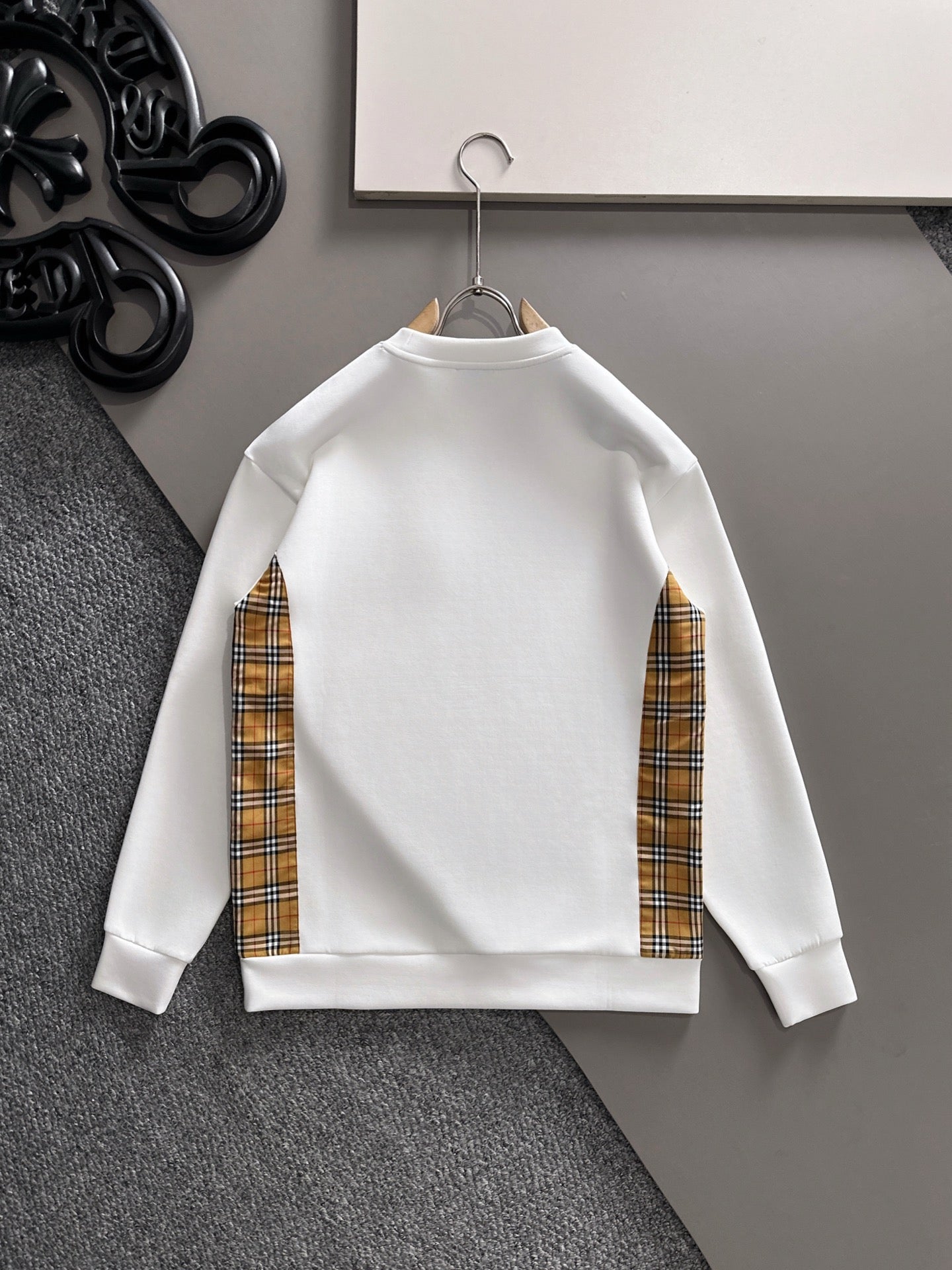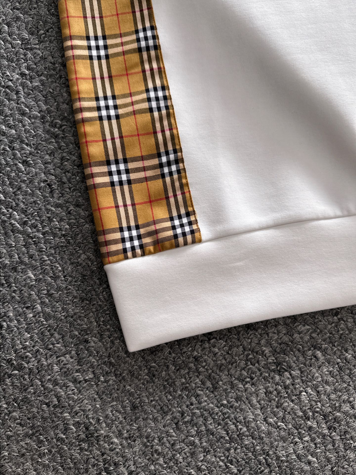 BURBERRY CHECK TRIM COTTON SWEATSHIRT IN WHITE
