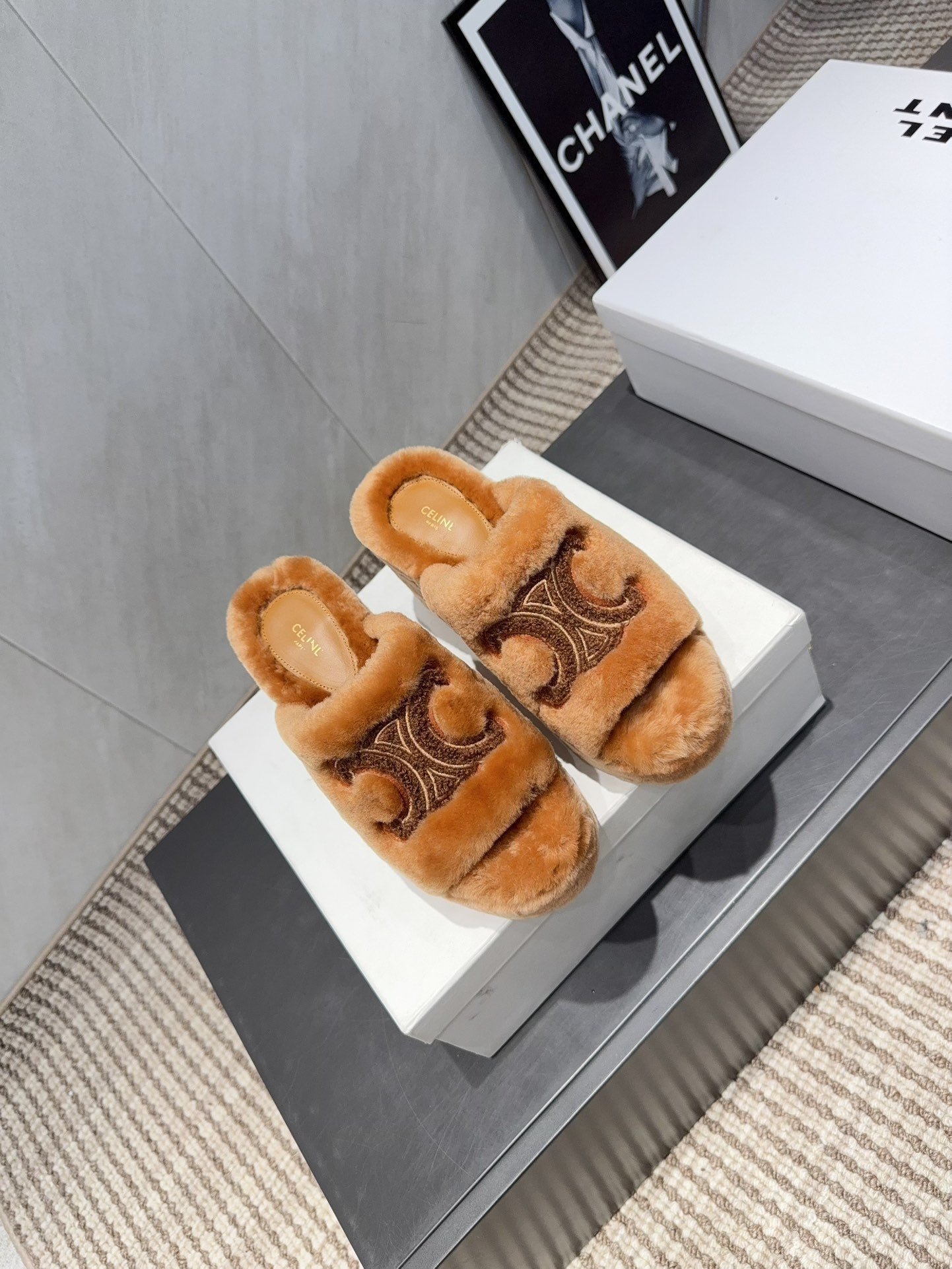 CELINE 26S HIGH-HEEL SANDALS IN BROWN PURE WOOL