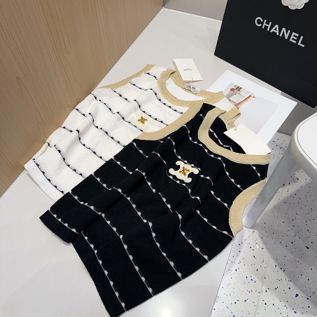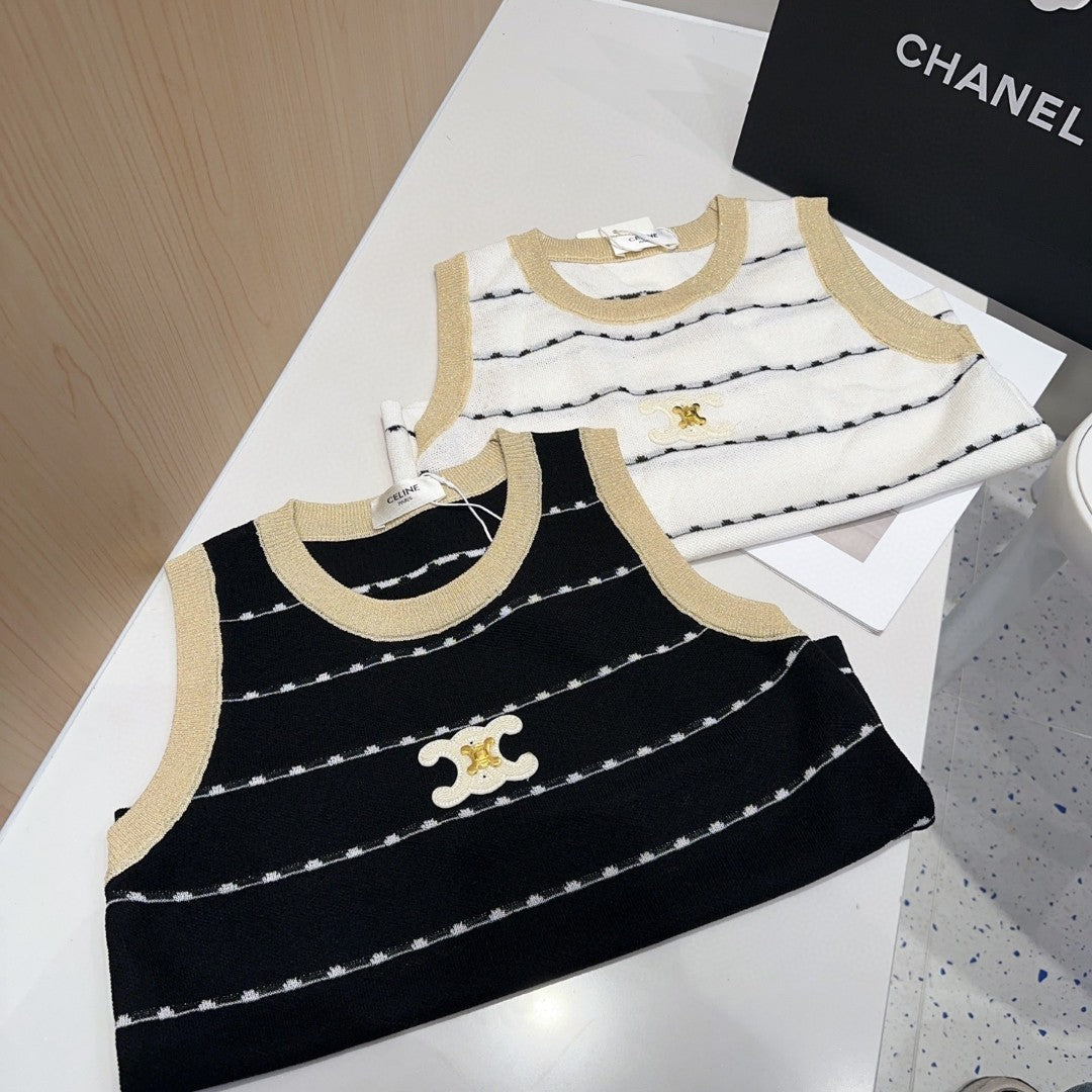 STRIPED TANK TOP 615178 IN WHITE COTTON RIBBED BEIGE TRIM