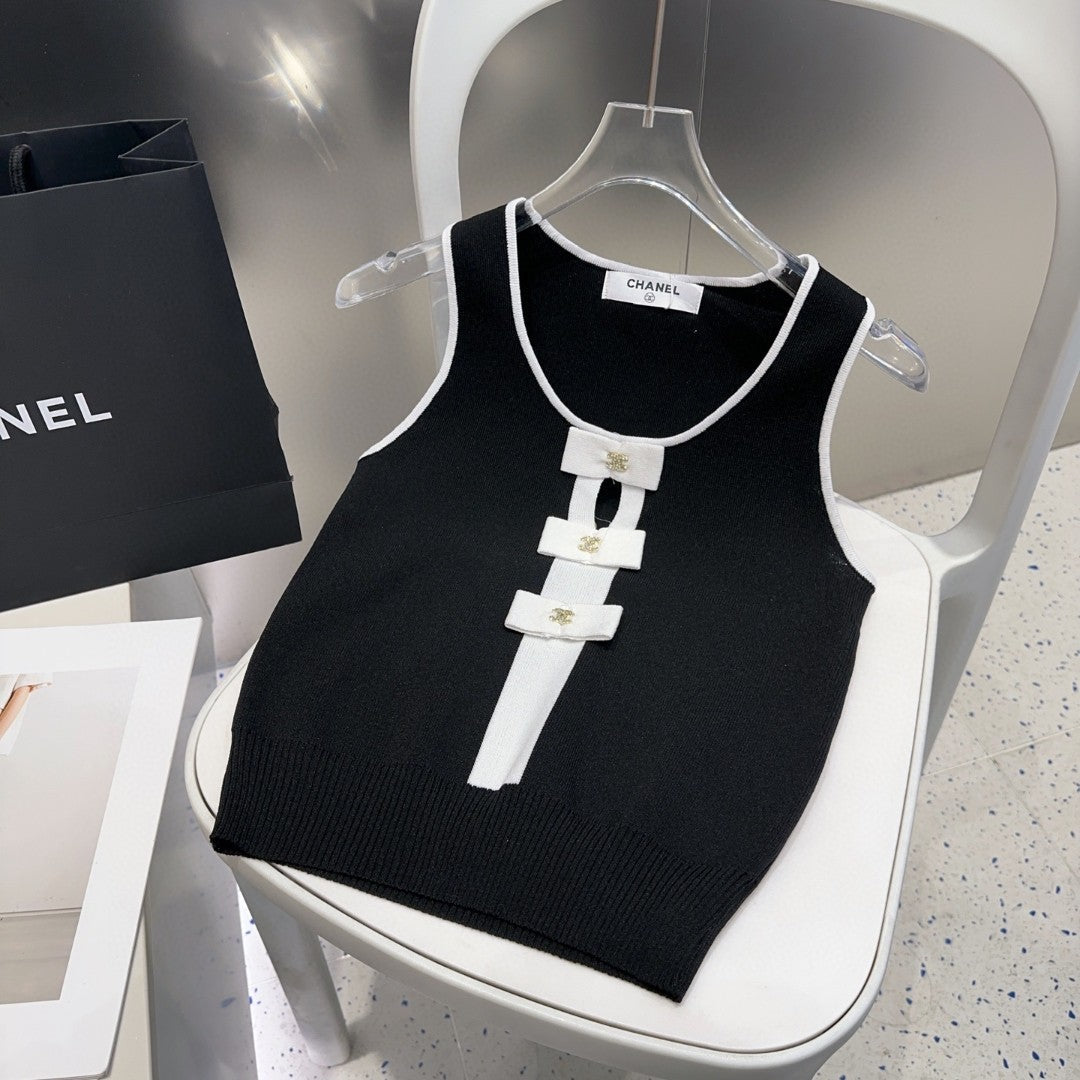 TANK TOP 610340 IN BLACK COTTON RIBBED WHITE BOW
