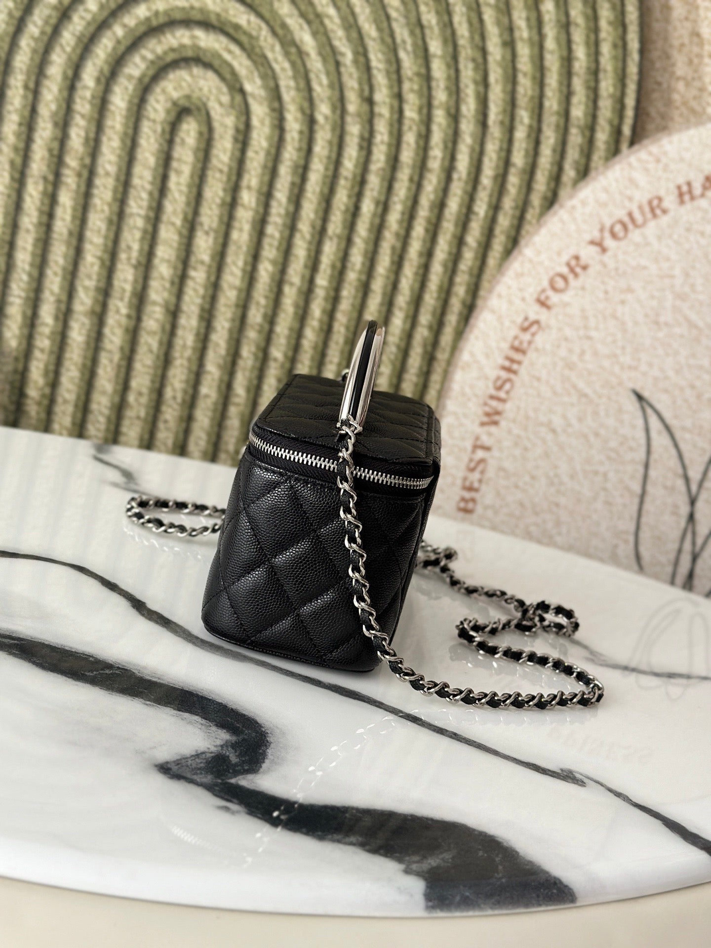 25P VANITY 17 CAVIAR WITH HANDLE METAL IN BLACK CALFSKIN SILVER HARDWARE