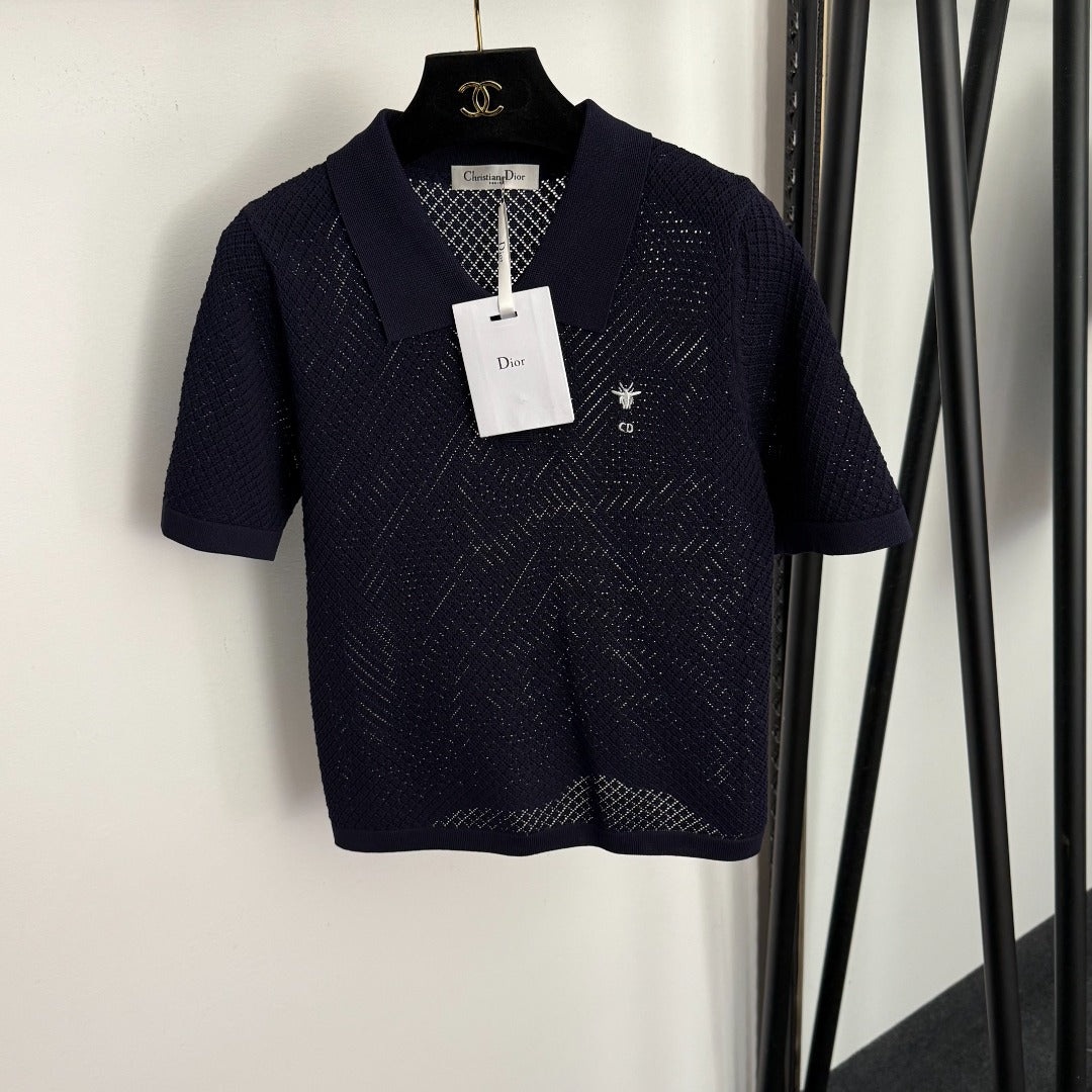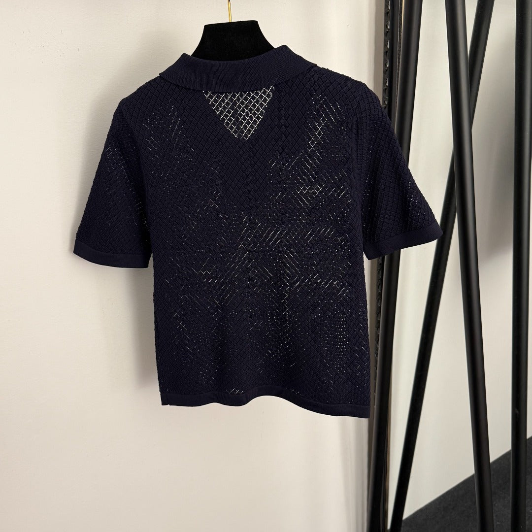 DIOR 26S SHORT-SLEEVE CUT-OUT KNIT TOP 1105