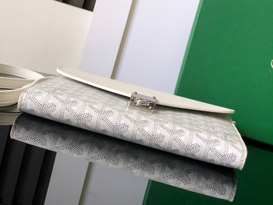 CHYPRE WALLET-POUCH 21 IN WHITE GOYARDINE CANVAS AND CALFSKIN