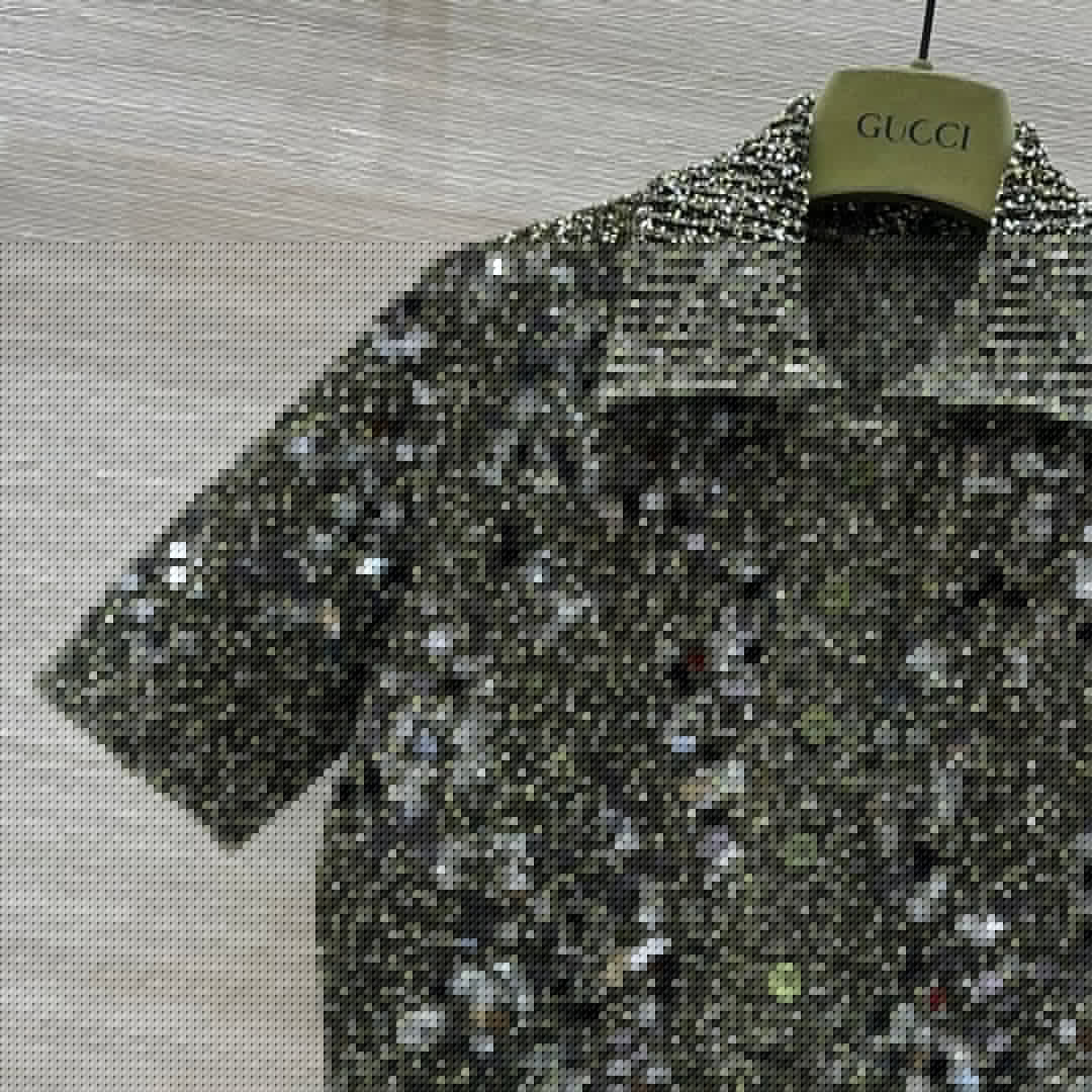 Gucci Knitted Polo Short-sleeved Top Green Wool
