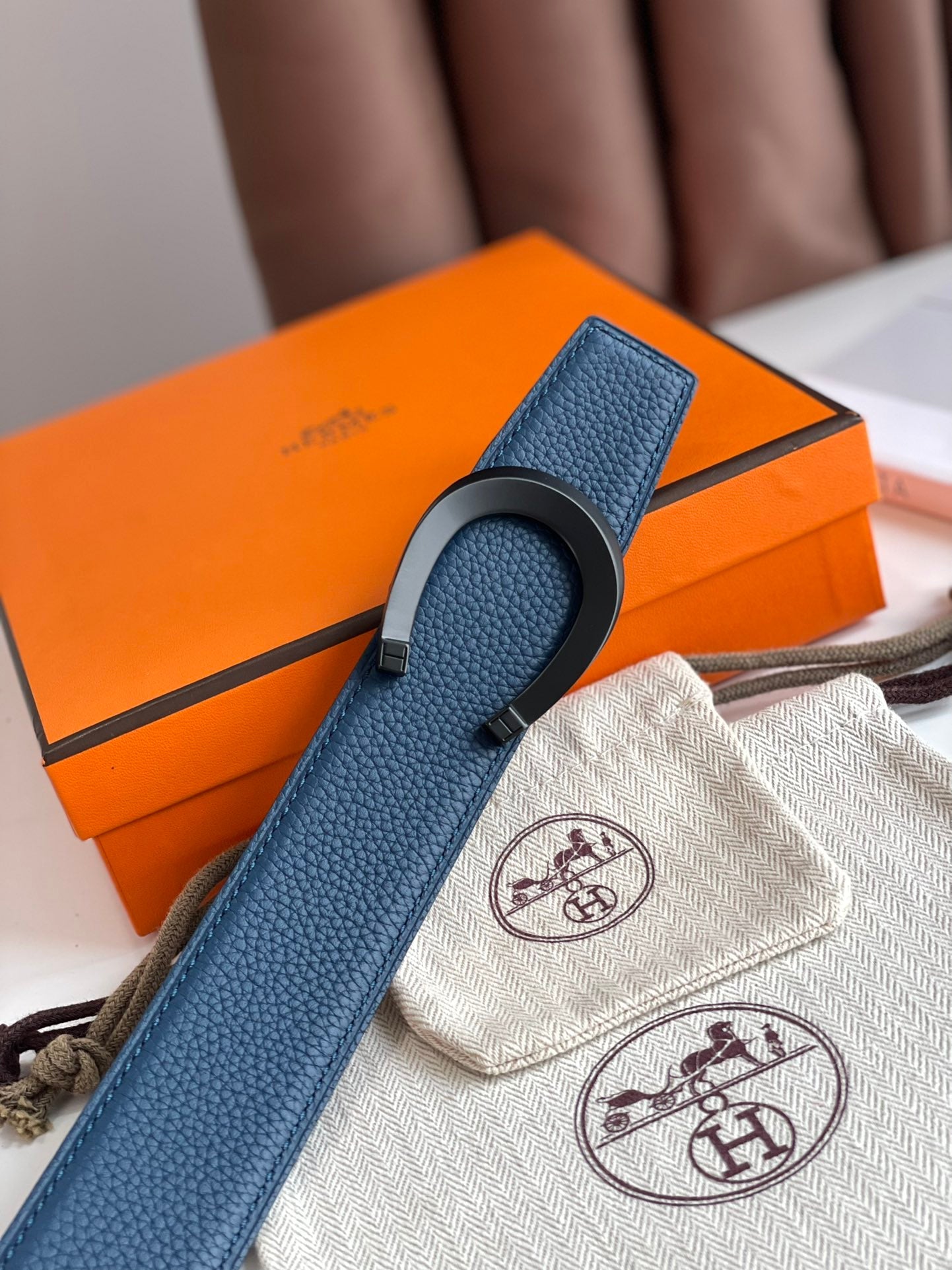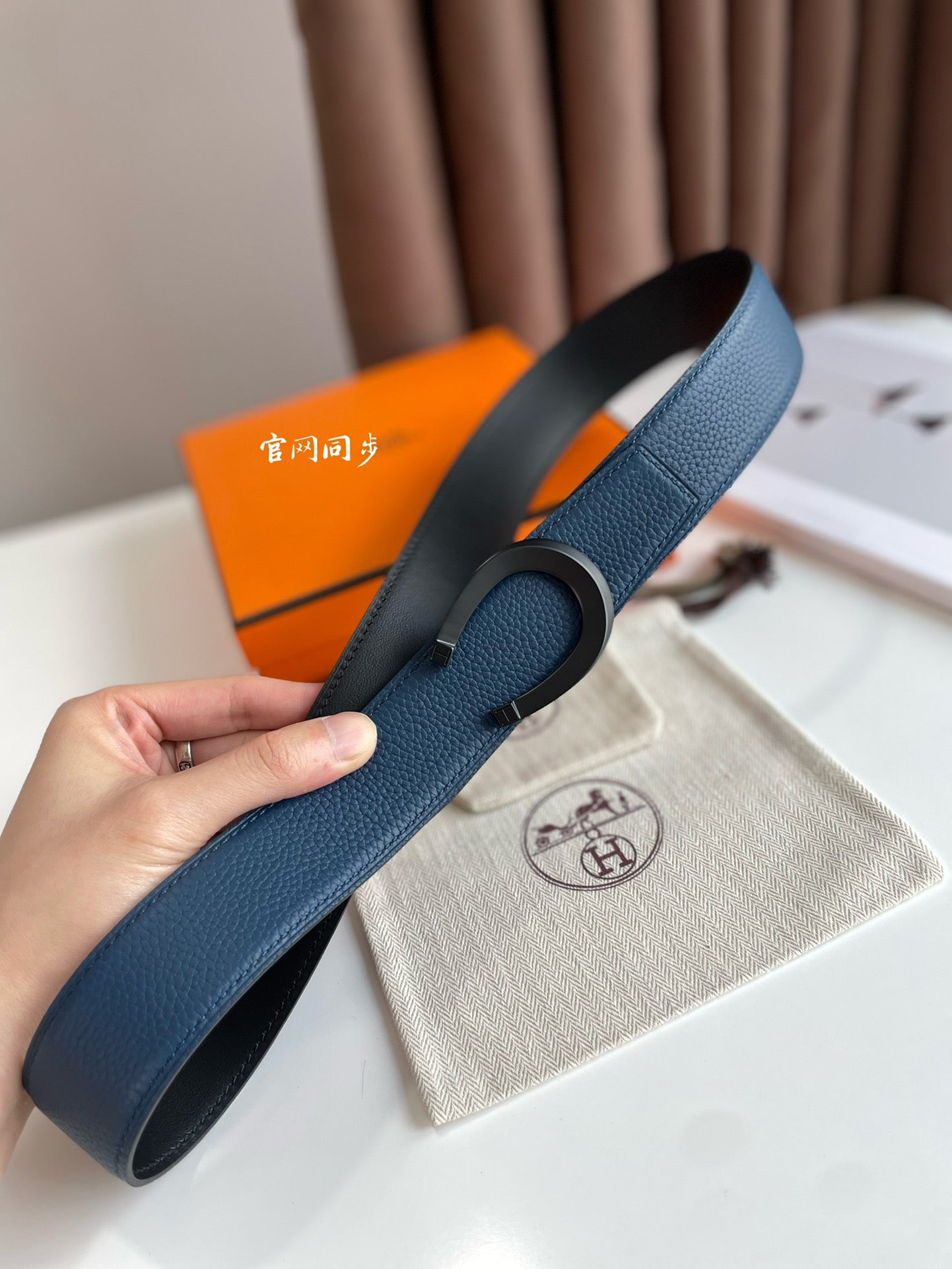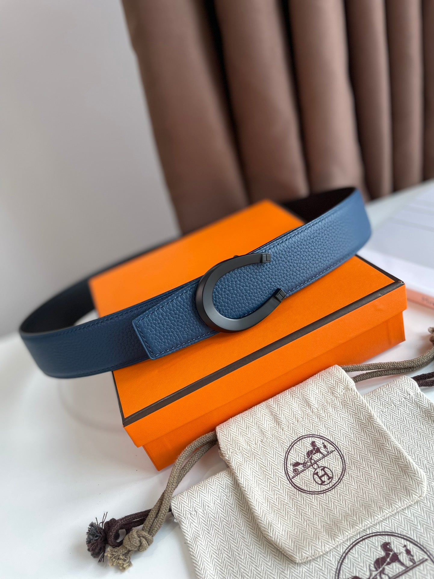 LUCK BELT BUCKLE & REVERSIBLE NAVY BLUE LEATHER STRAP 38MM BLACK HARDWARE