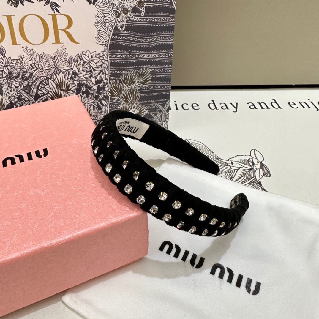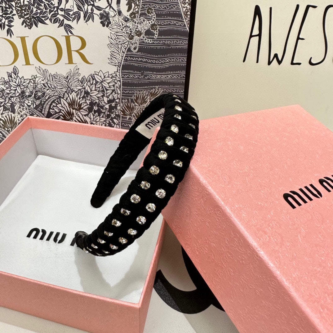 HAIRBAND IN BLACK FELT FABRIC DIAMOND-EMBELLISHED 230830