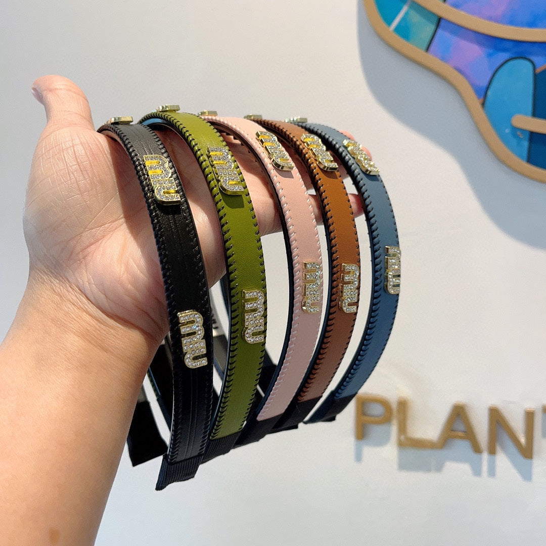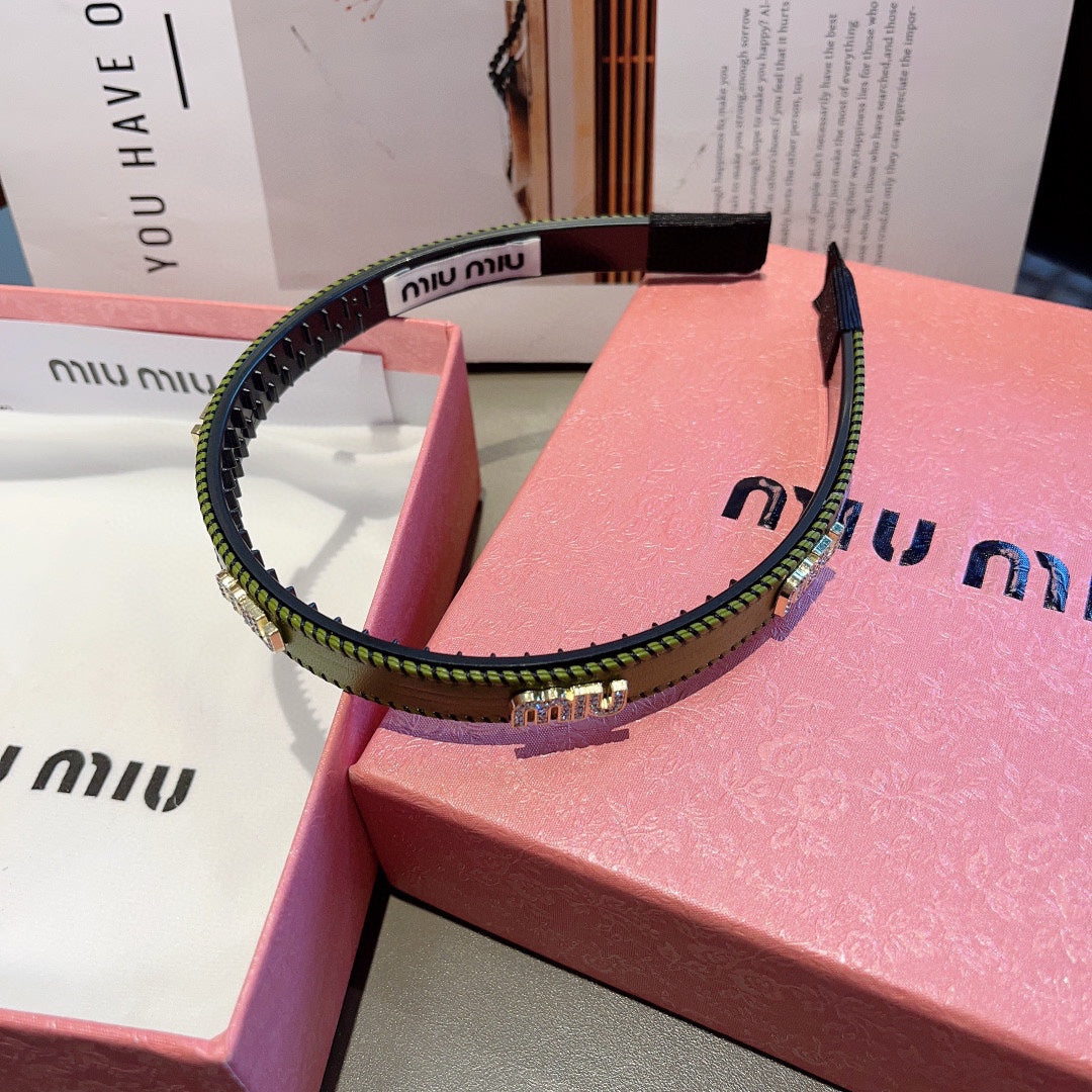HEAD BAND IN OLIVE GREEN LAMBSKIN AND RESIN 417298