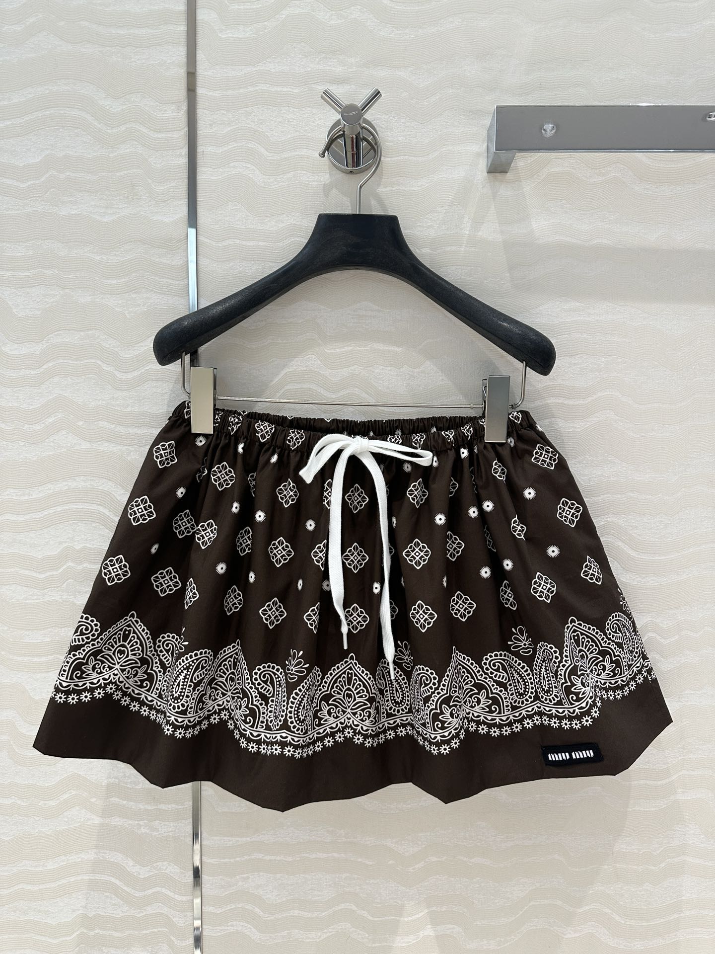 MIUMIU EARTH BROWN PLEATED MIDI SKIRT