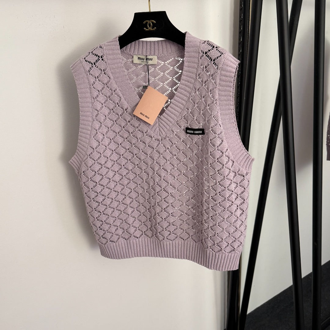 MIUMIU 26S HOLLOW OUT V-NECK VEST 1013
