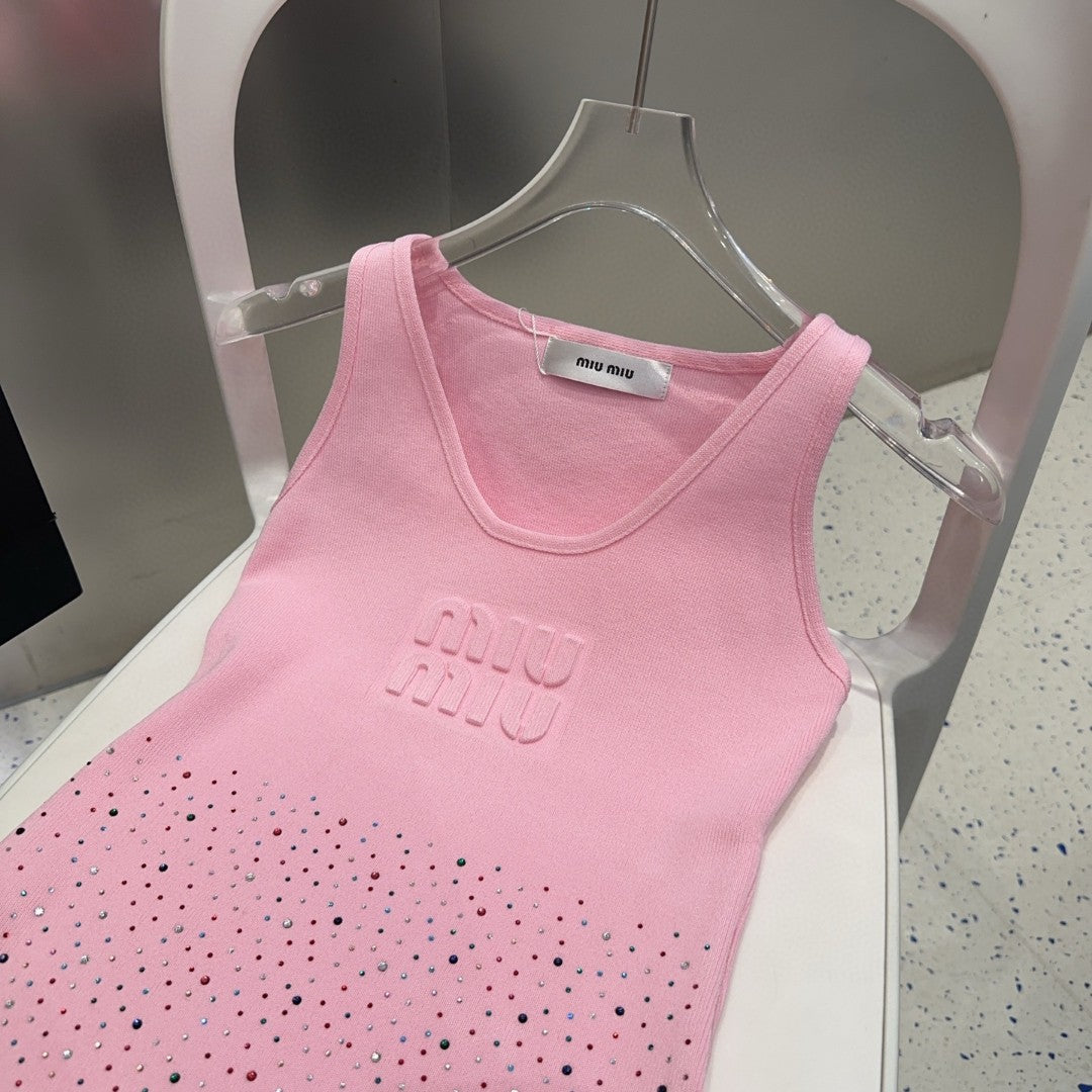 TANK TOP 640625 IN PINK COTTON MUTILCOLOR CRYSTAL