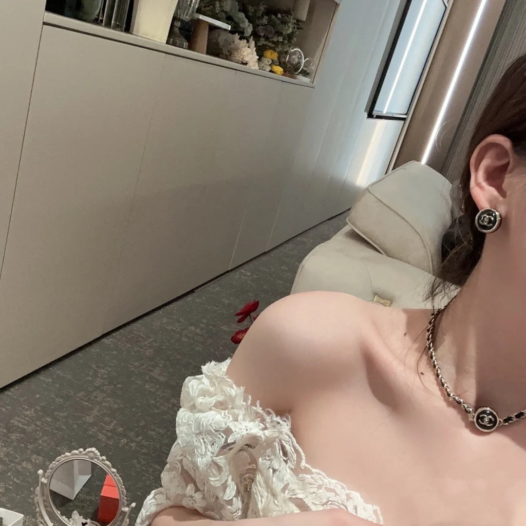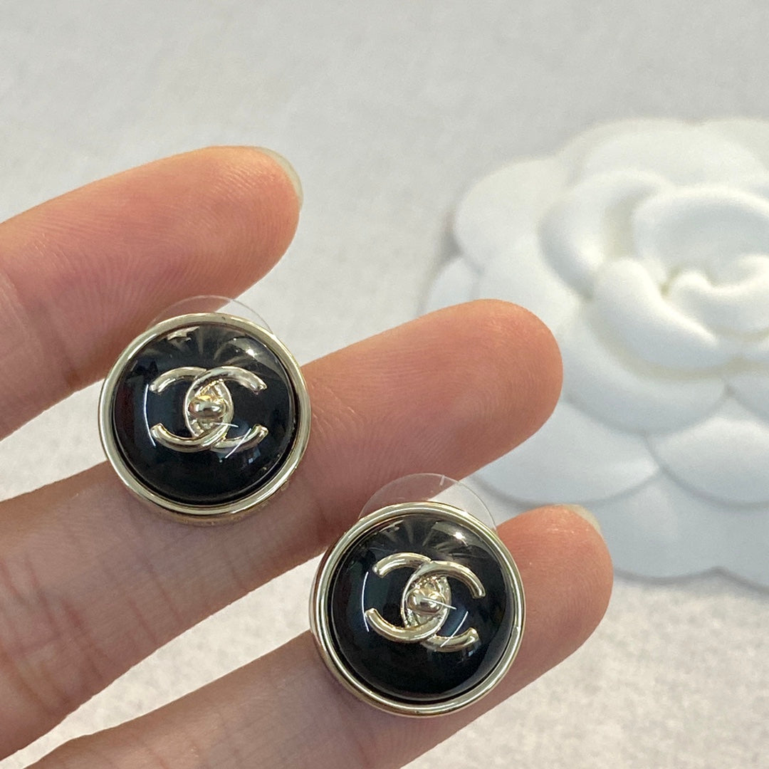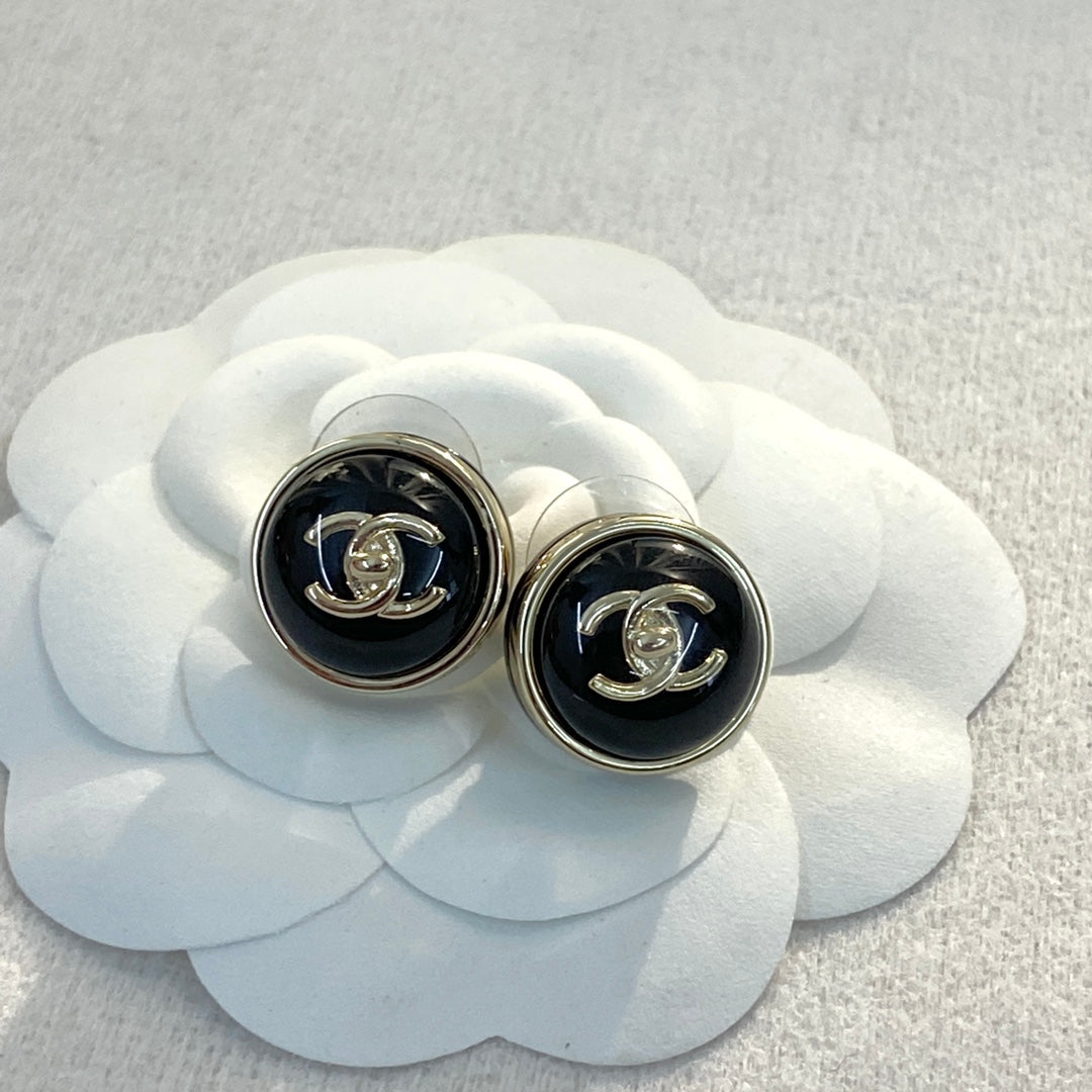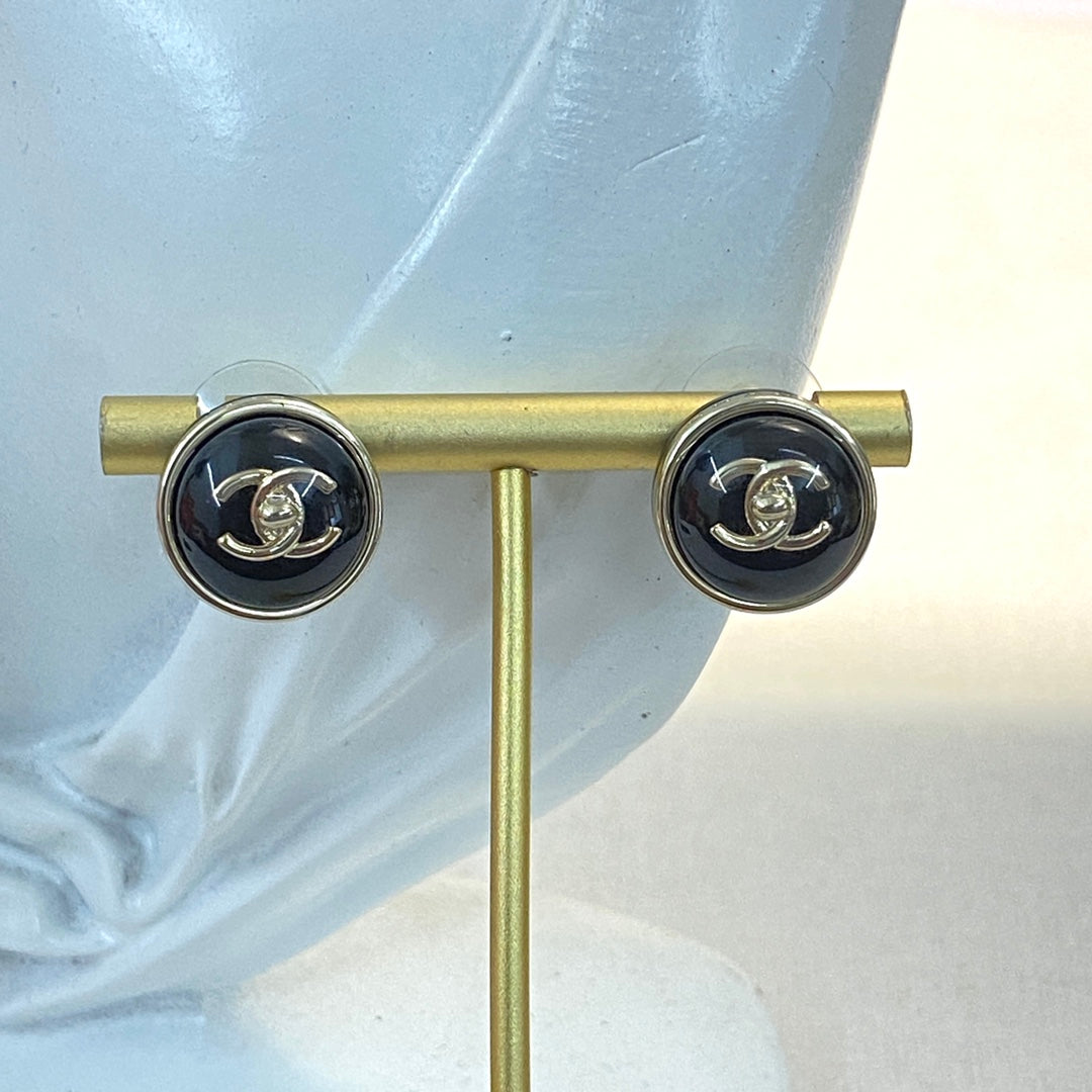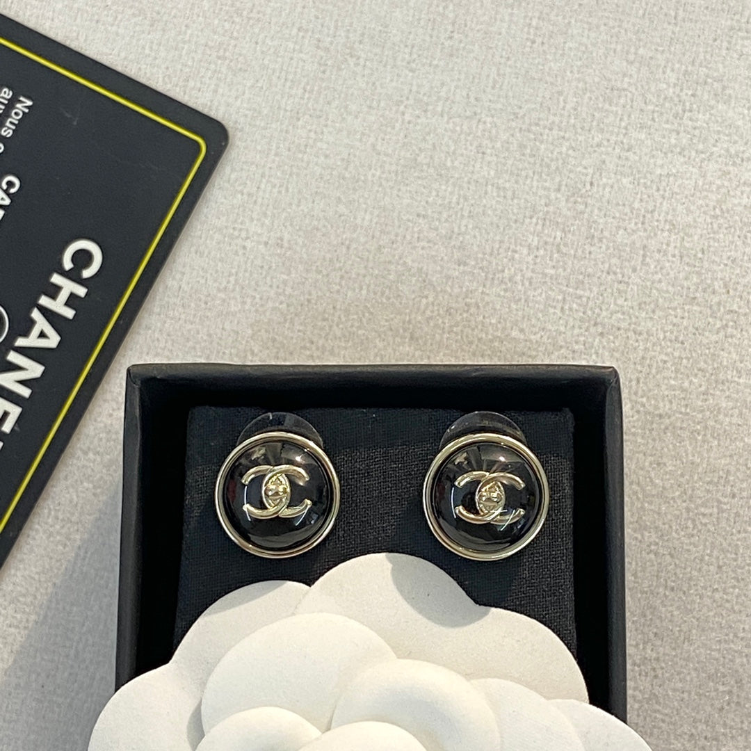 CHANEL 26S DOUBLE C LOGO ROUND WHITE RESIN STUD EARRINGS IN GOLD METAL 633347