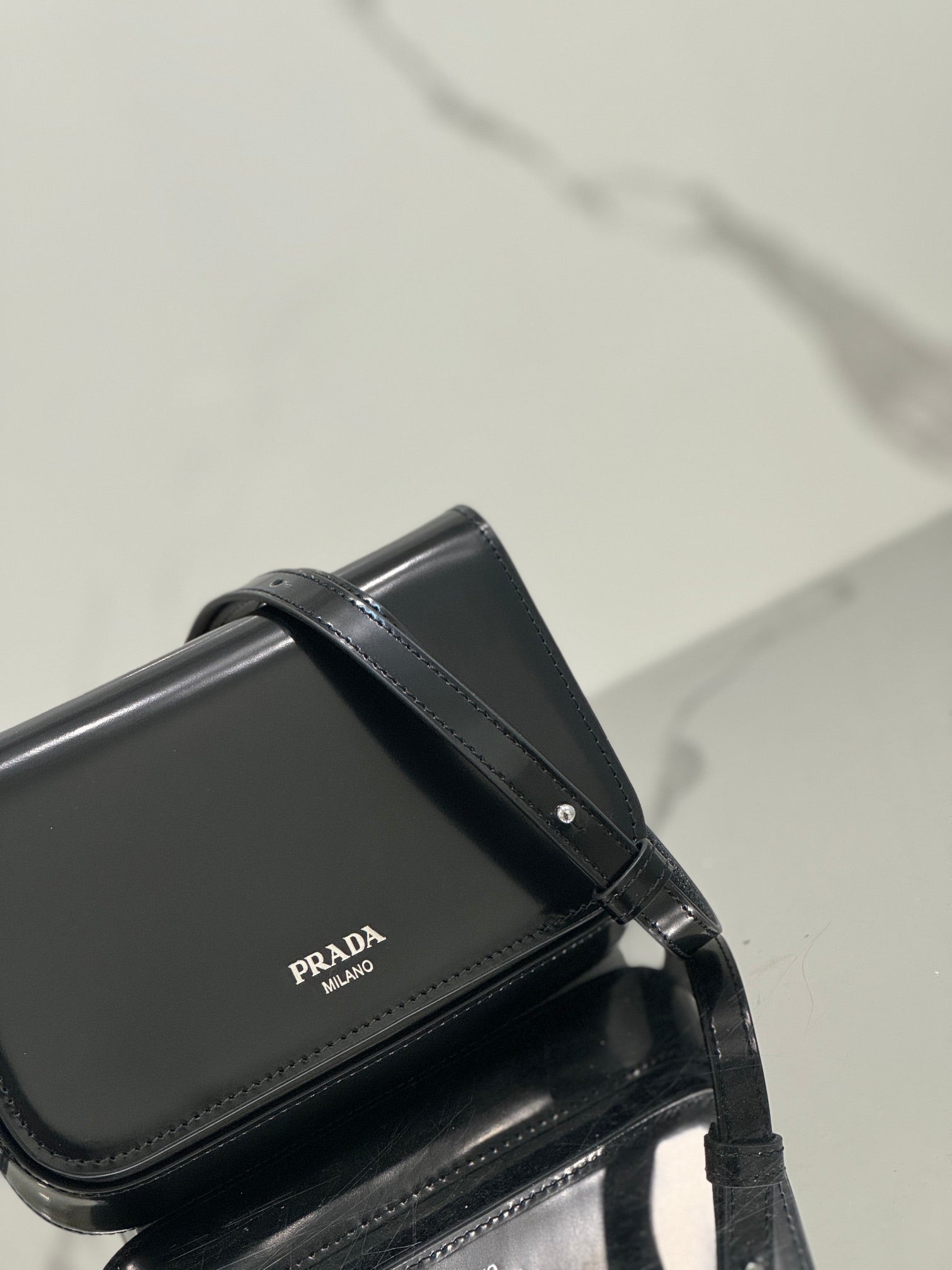 FLAP BAG 18 IN BLACK SHINY CALFSKIN