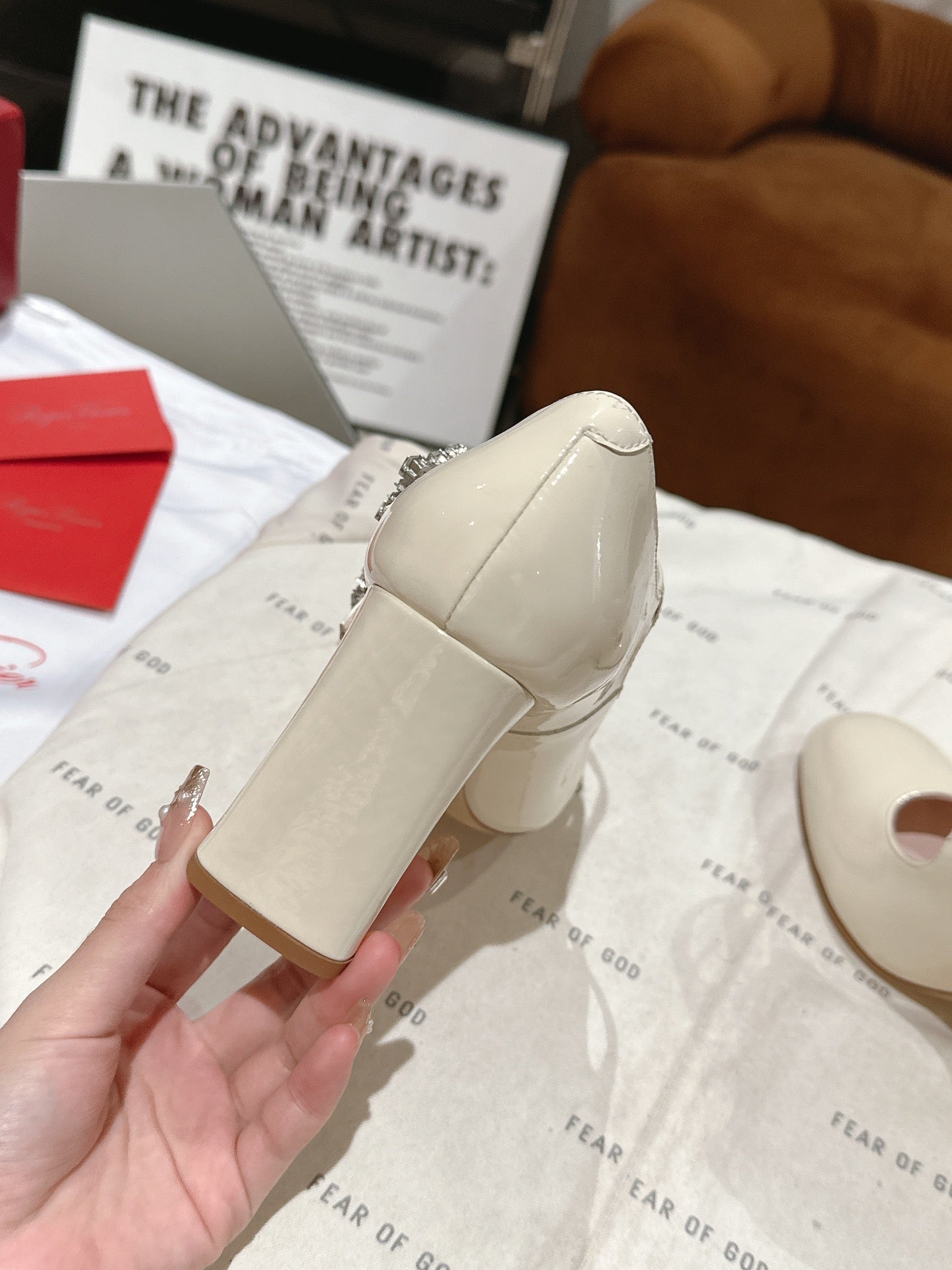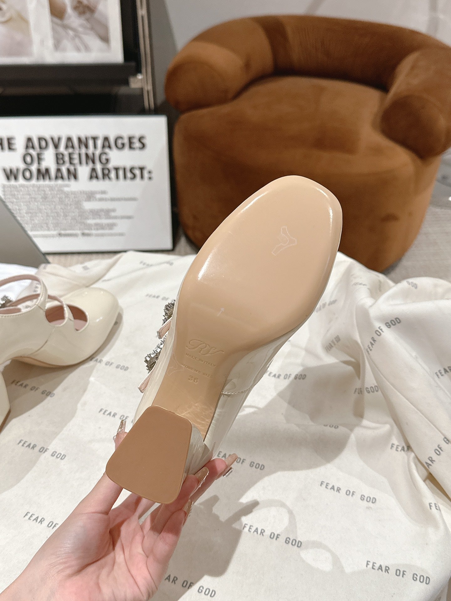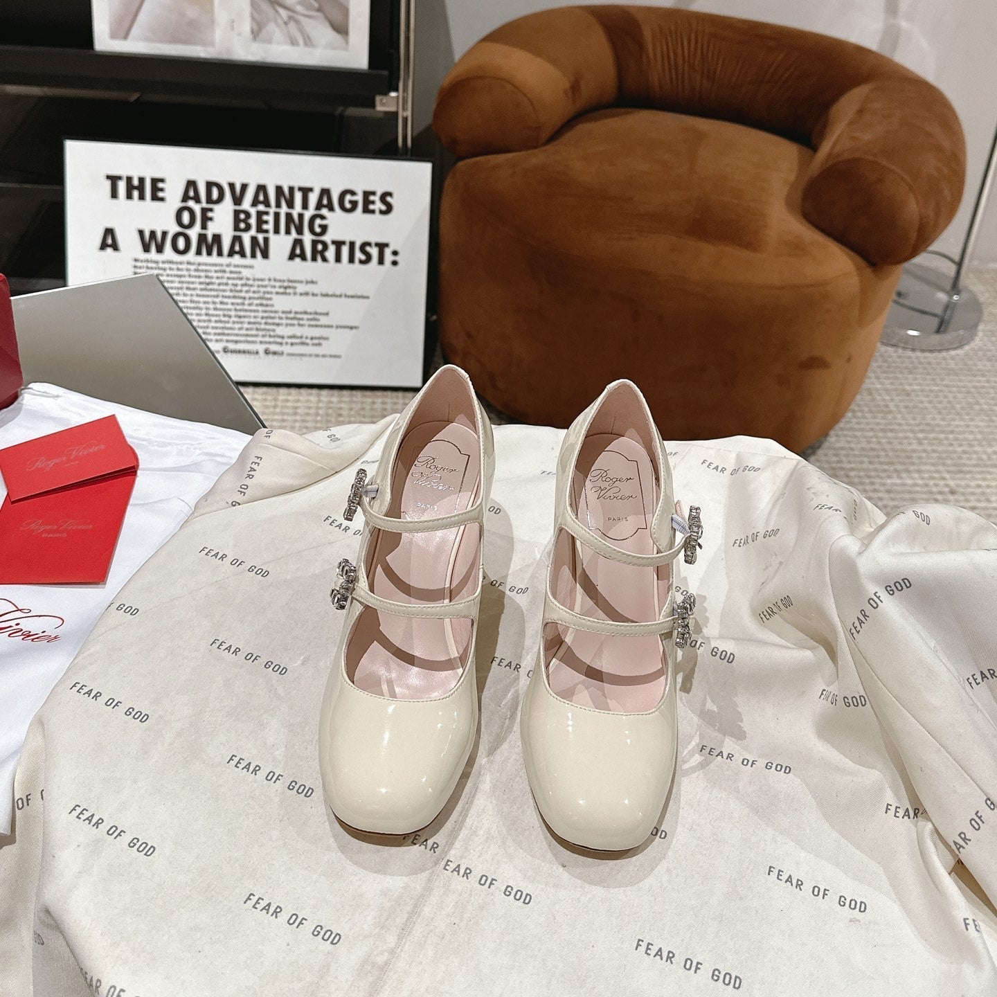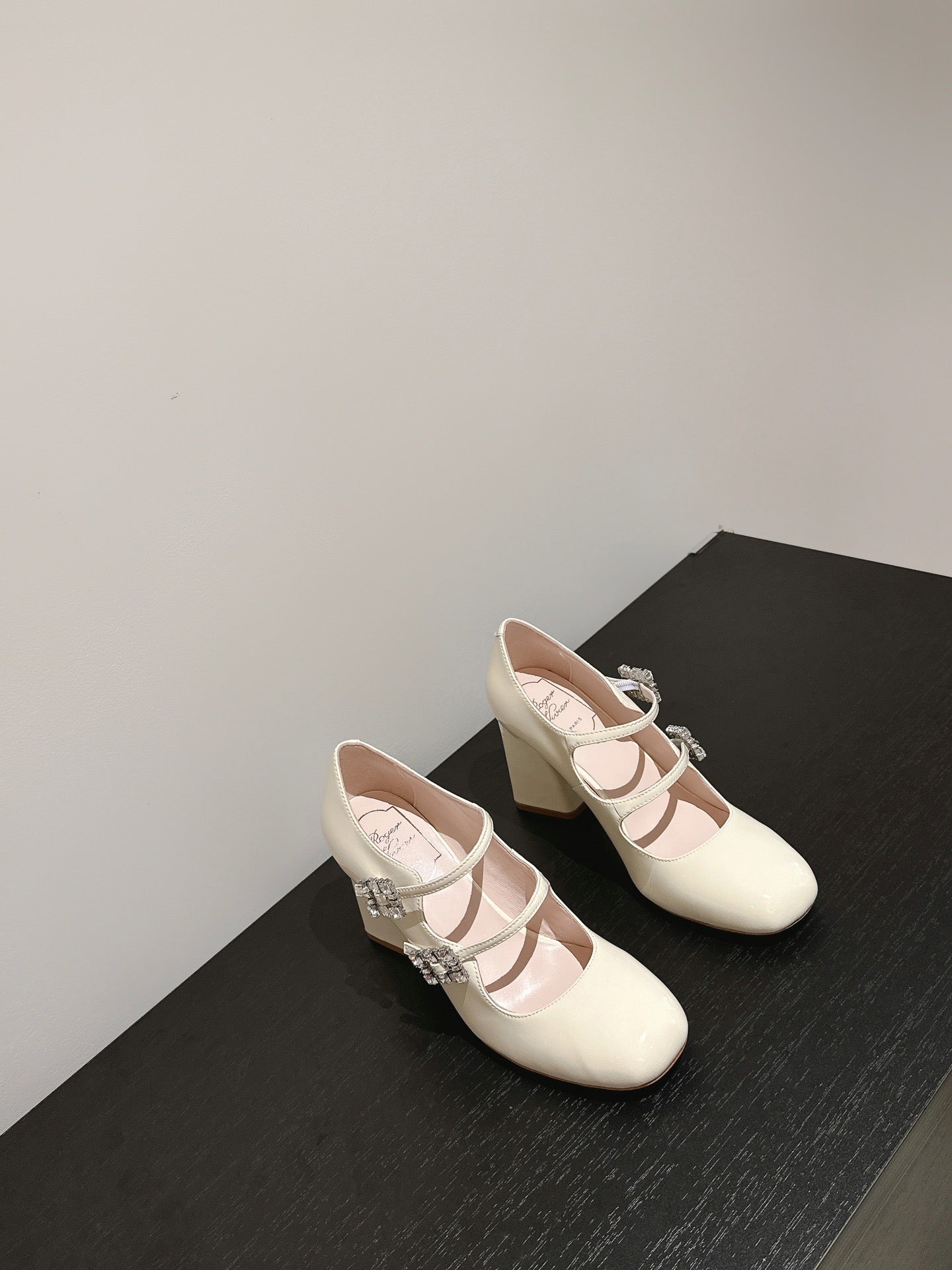 TRÈS VIVIER MARY JANE DOUBLE-STRAP PUMPS IN OFF WHITE PATENT CALFSKIN