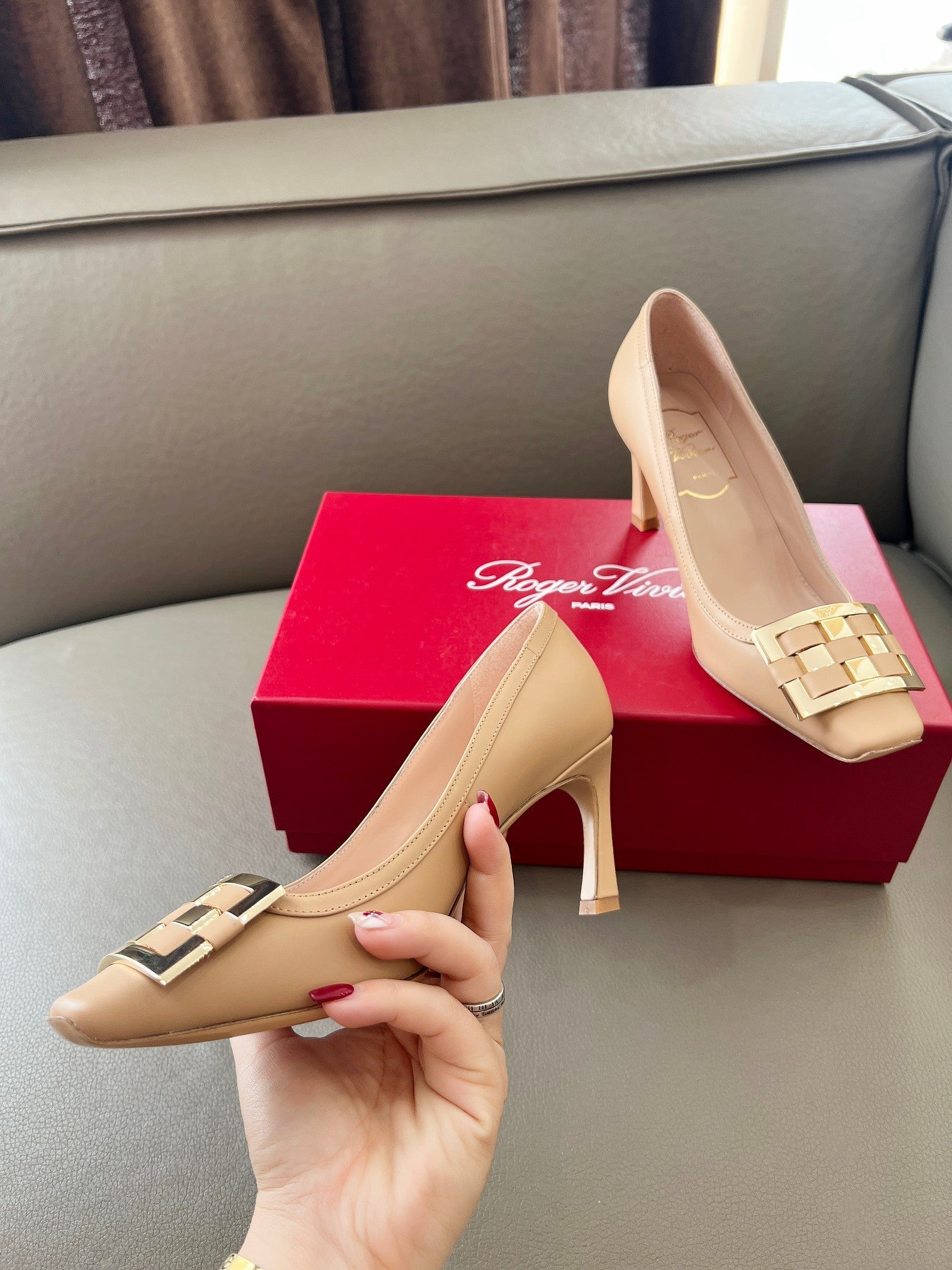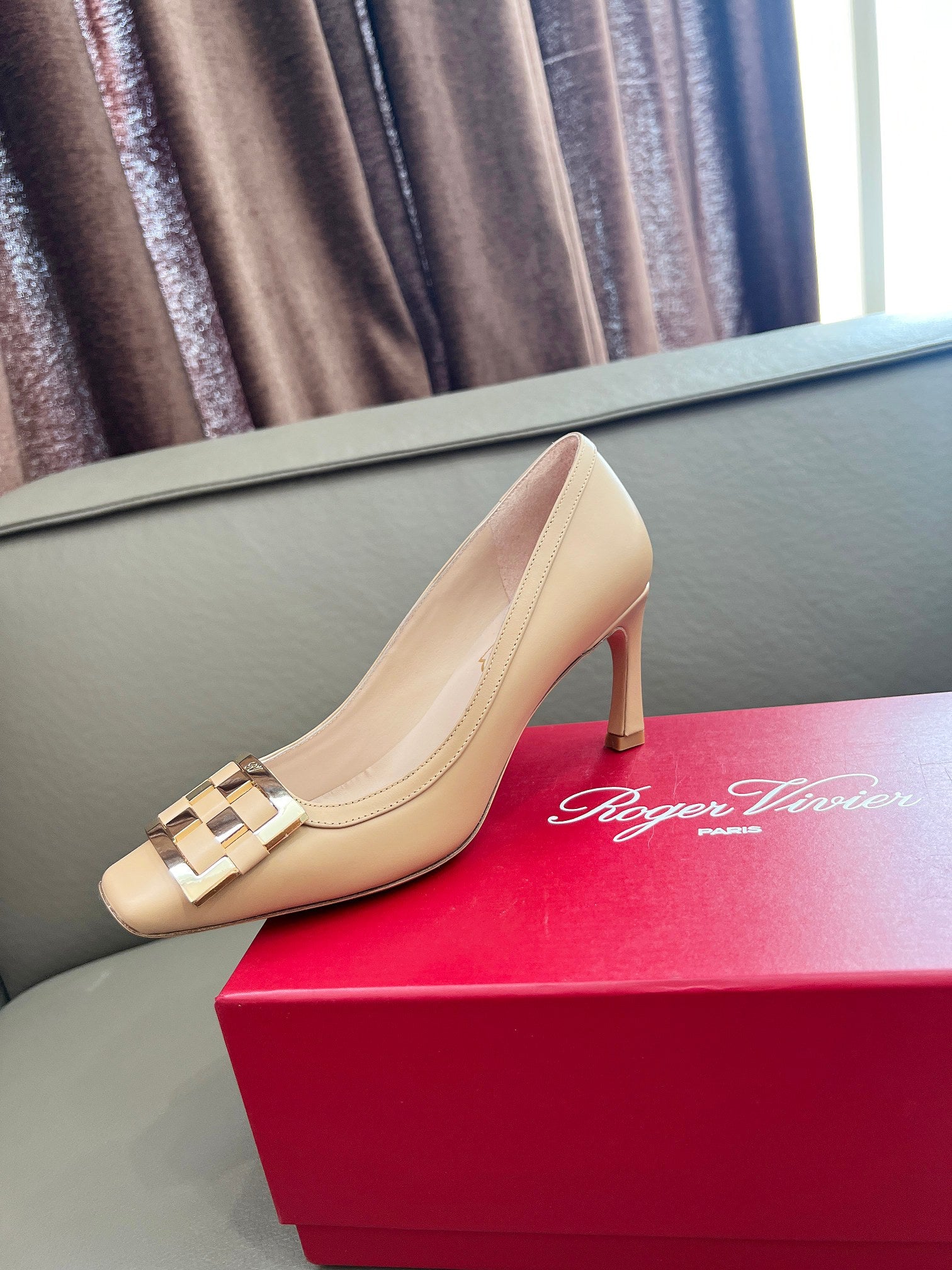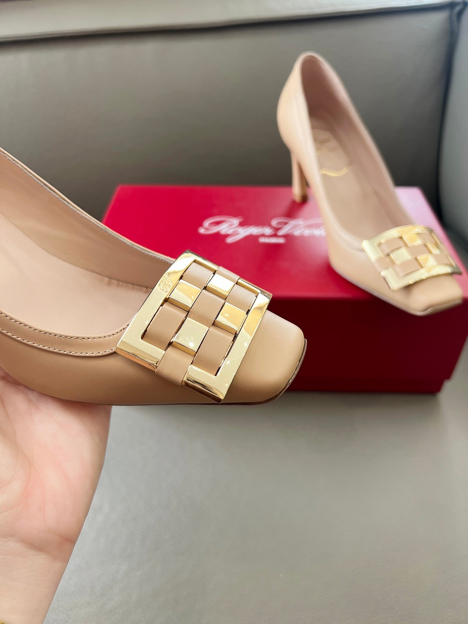 TROMPETTE BALLERINAS PUMPS IN NUDE SHINY CALFSKIN GOLD BUCKLE