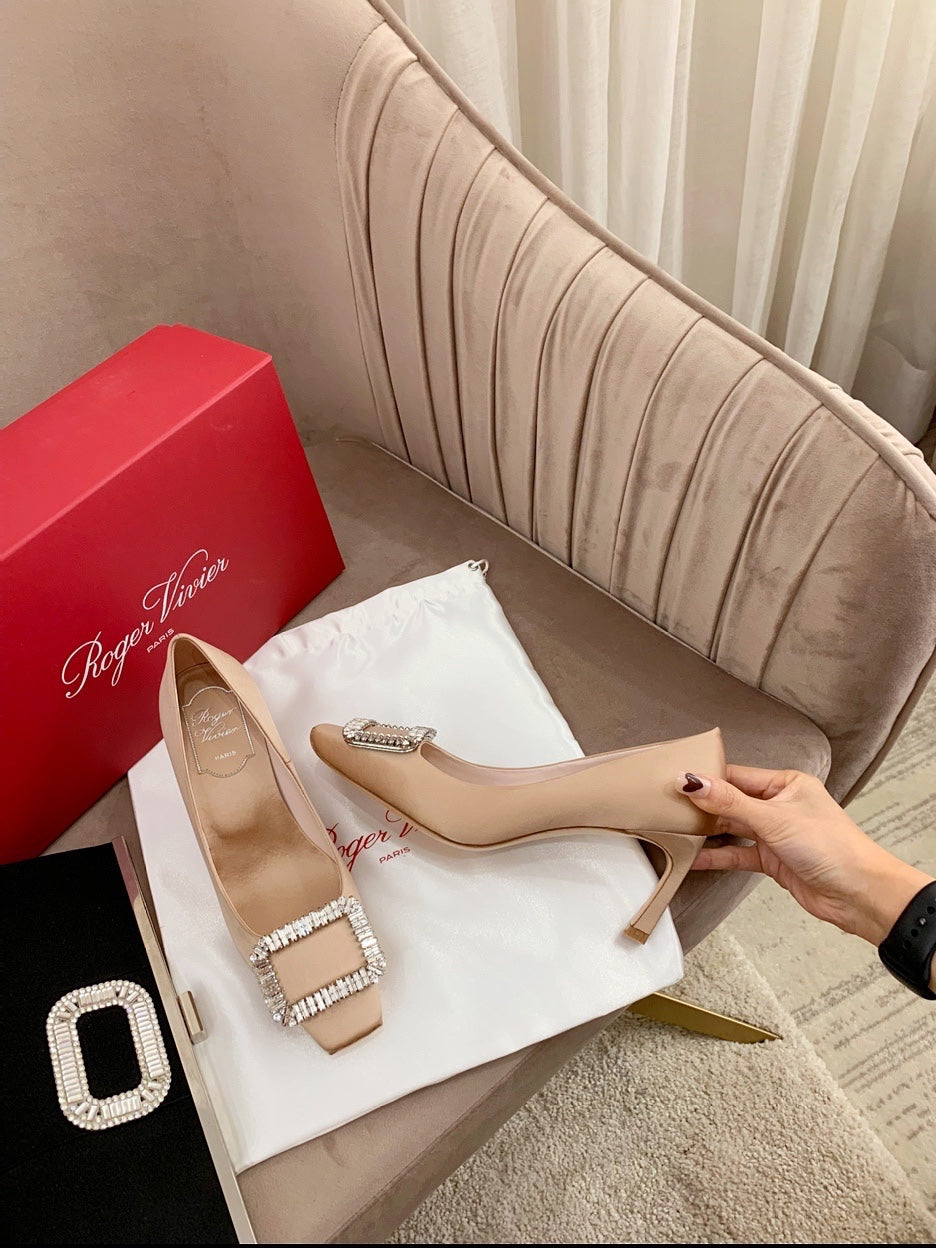 TROMPETTE PUMPS IN BEIGE SILK CRYSTAL BUCKLE