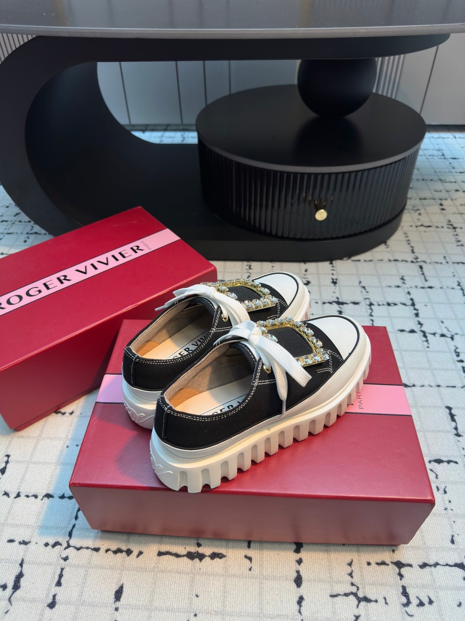 VIV' GO-THICK STRASS BUCKLE SLIP-ON SNEAKERS IN BLACK CANVAS