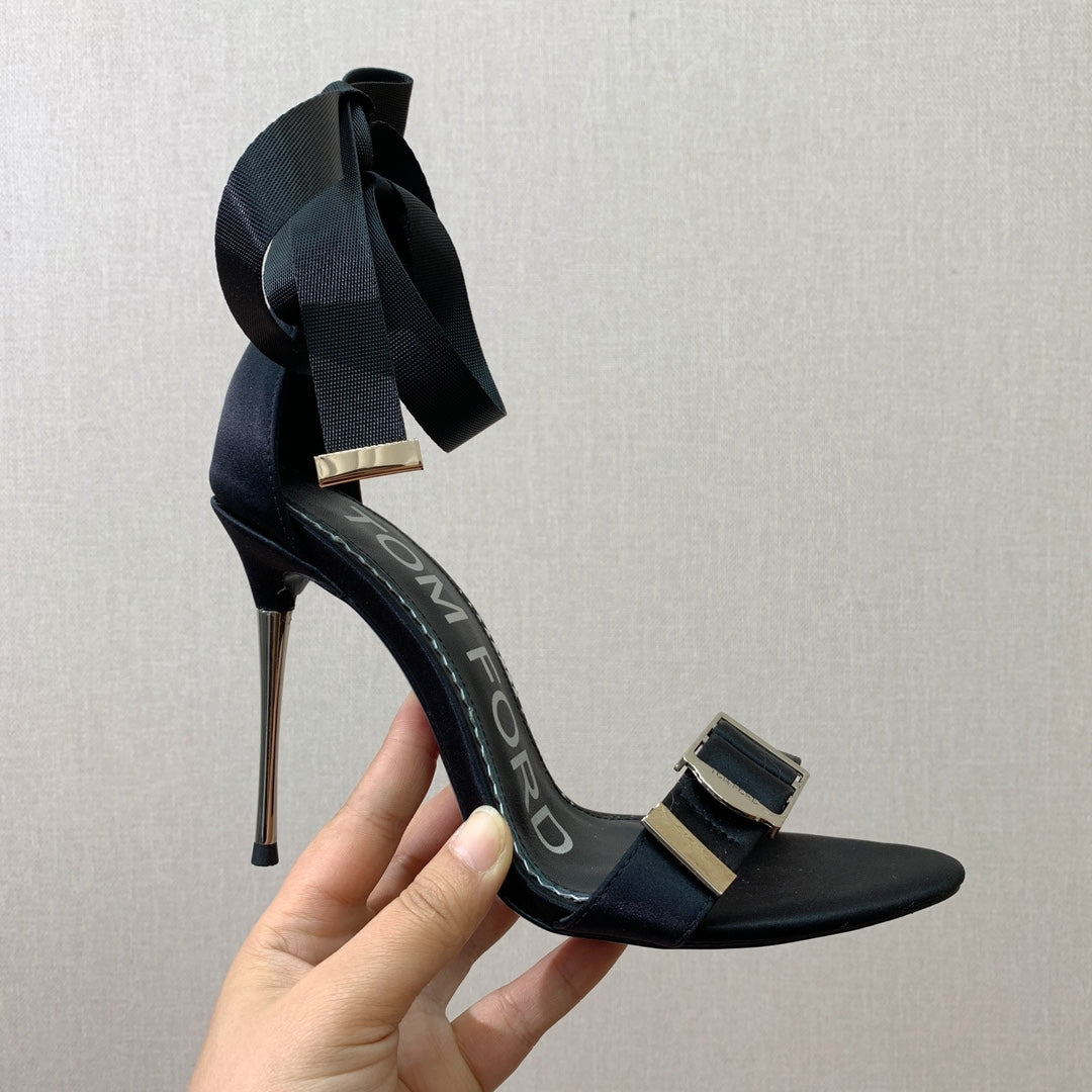 ANKLE SANDAL 10 CM IN BLACK SILK AND SHEEPSKIN