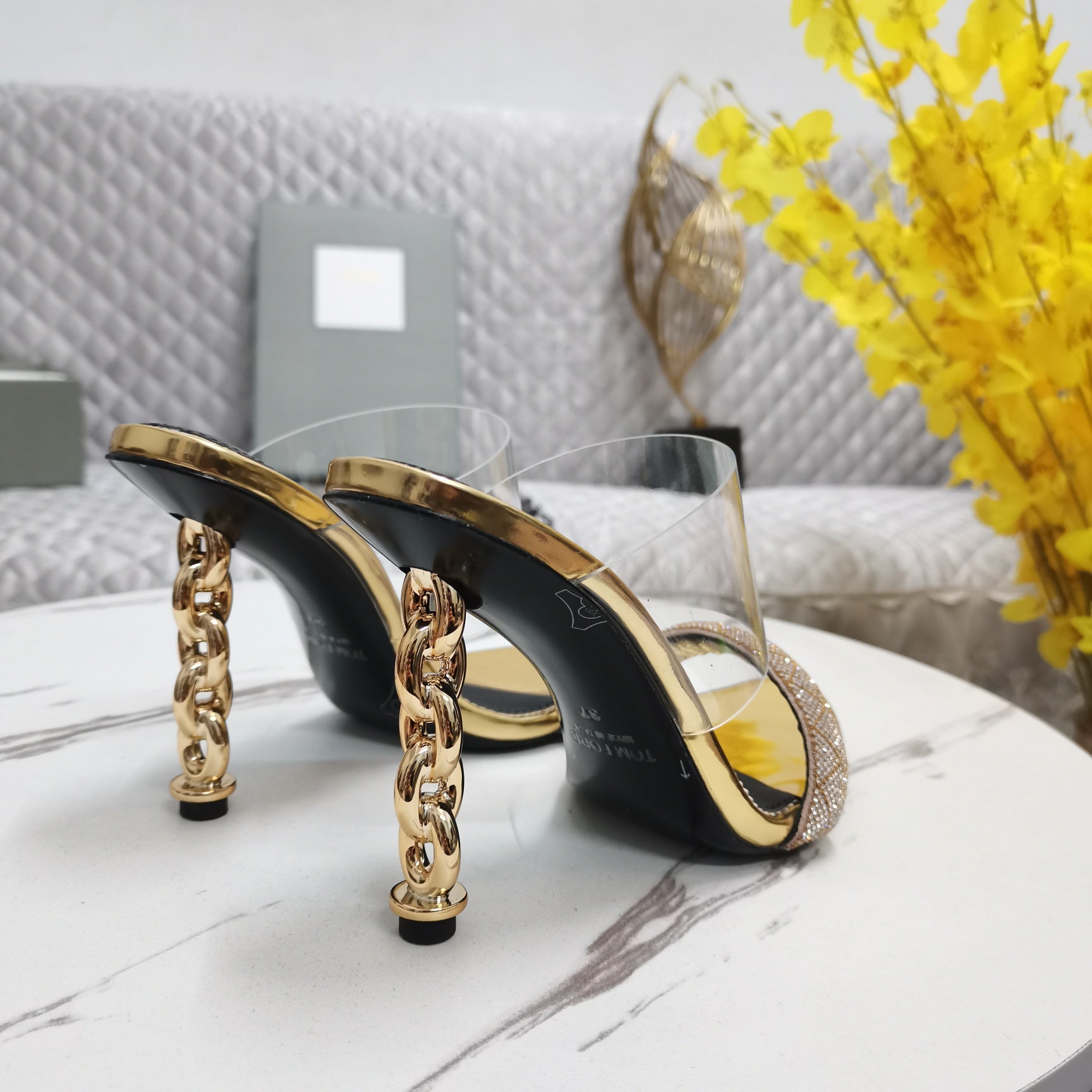 CRYSTAL HIGH HEEL MULE 10 CM IN GOLD LAMBSKIN