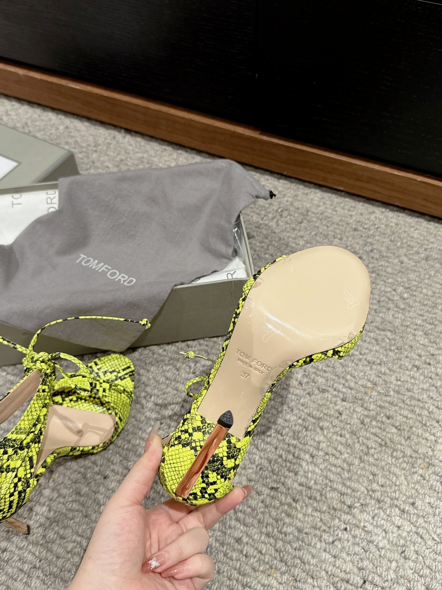 HIGH HEEL 10 CM SANDAL IN NEON YELLOW MIX BLACK CALFSKIN 684356