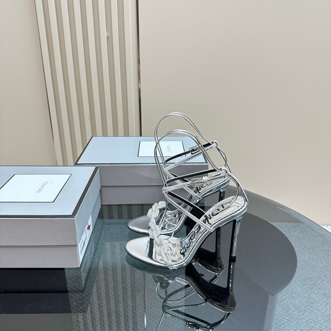HIGH-HEELED 10 CM SANDAL IN SILVER LAMBSKIN