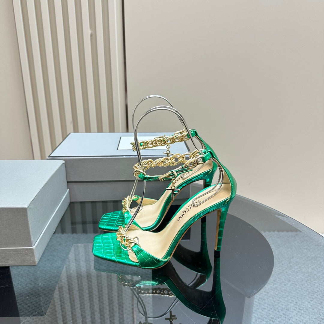 HIGH-HEELED SANDAL IN GREEN MINT CALFSKIN