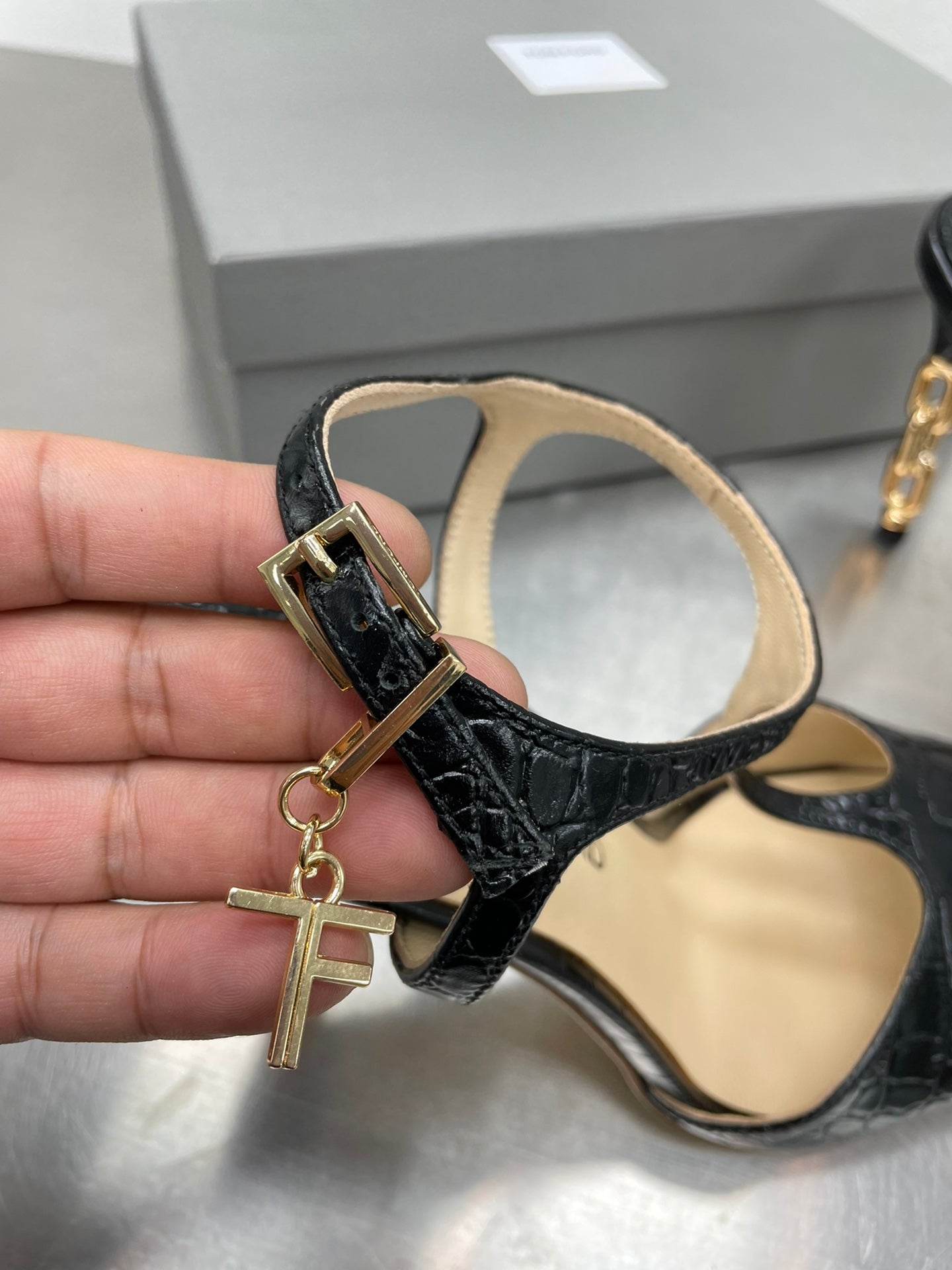 HIGH-HEELED T-STRAP SANDAL IN BLACK CALFSKIN