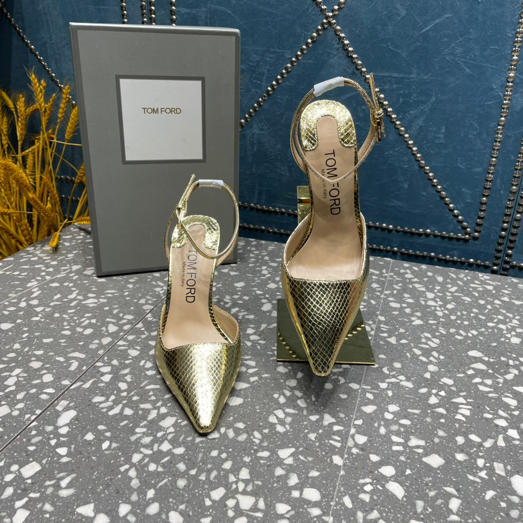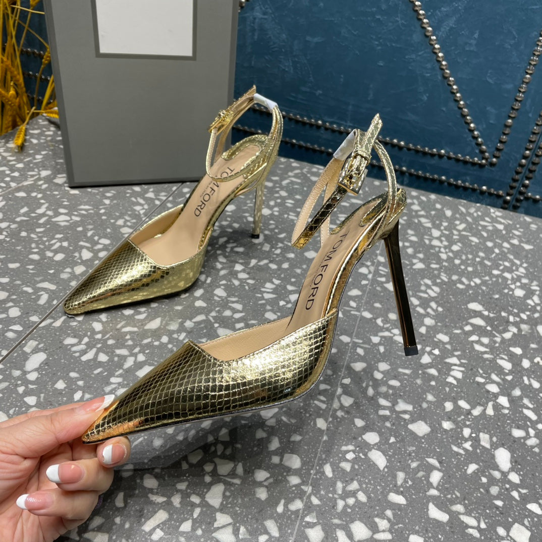 HIGH HEELS 10 CM IN GOLD SNAKE PATTERNED CALFSKIN