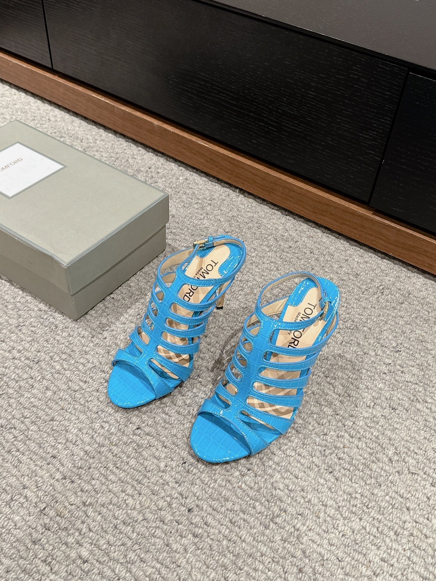 HIGH SANDAL 10 CM IN AZURE BLUE CALFSKIN
