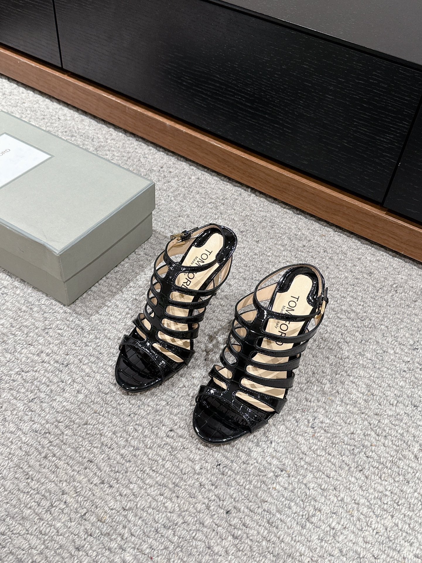 HIGH SANDAL 10 CM IN BLACK CALFSKIN