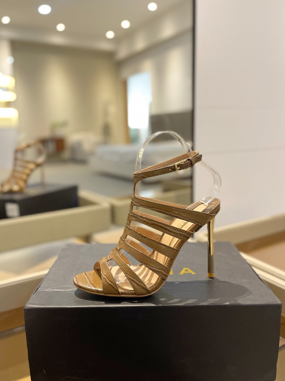 HIGH SANDAL 10 CM IN CIDER BROWN CALFSKIN