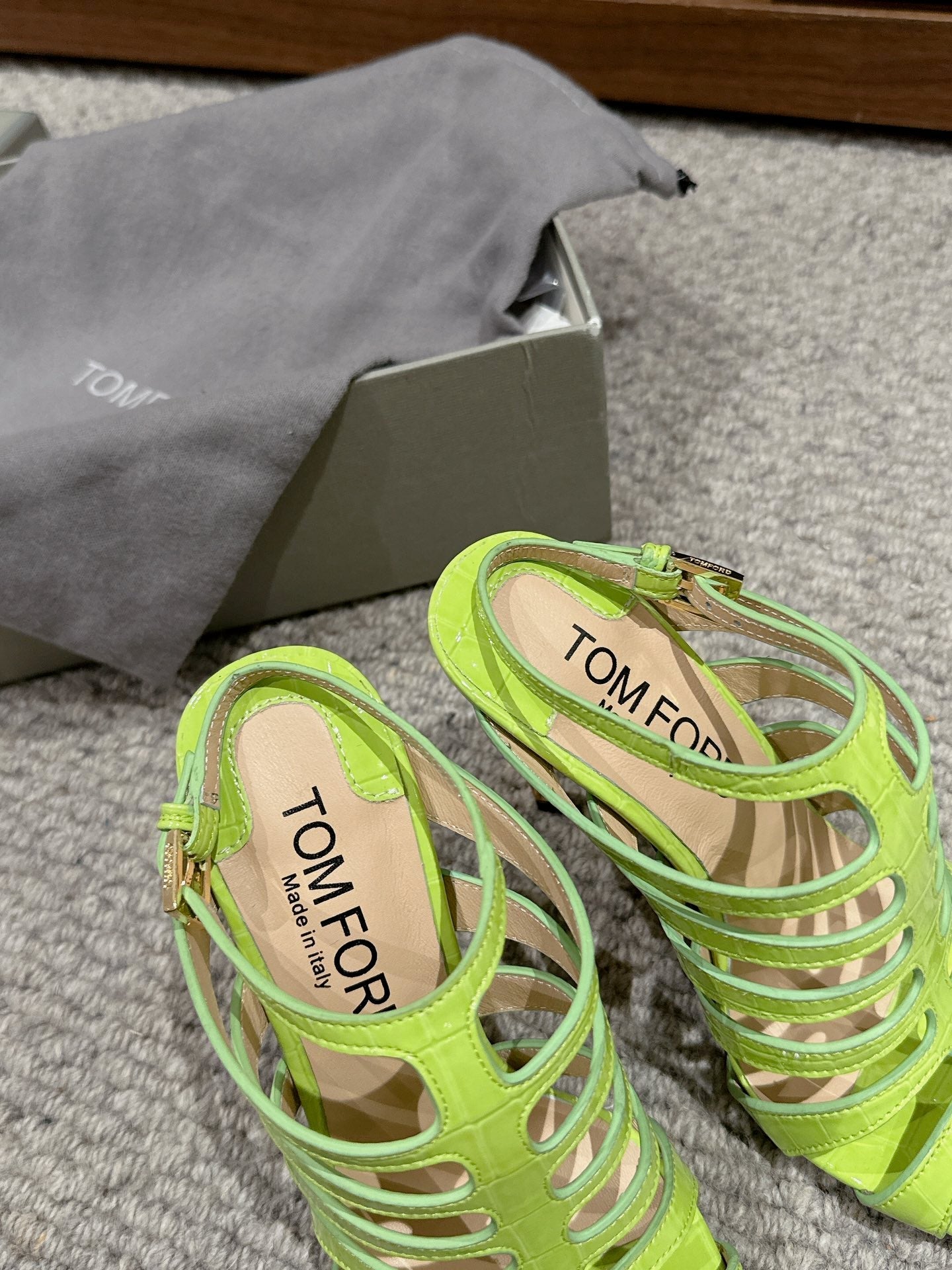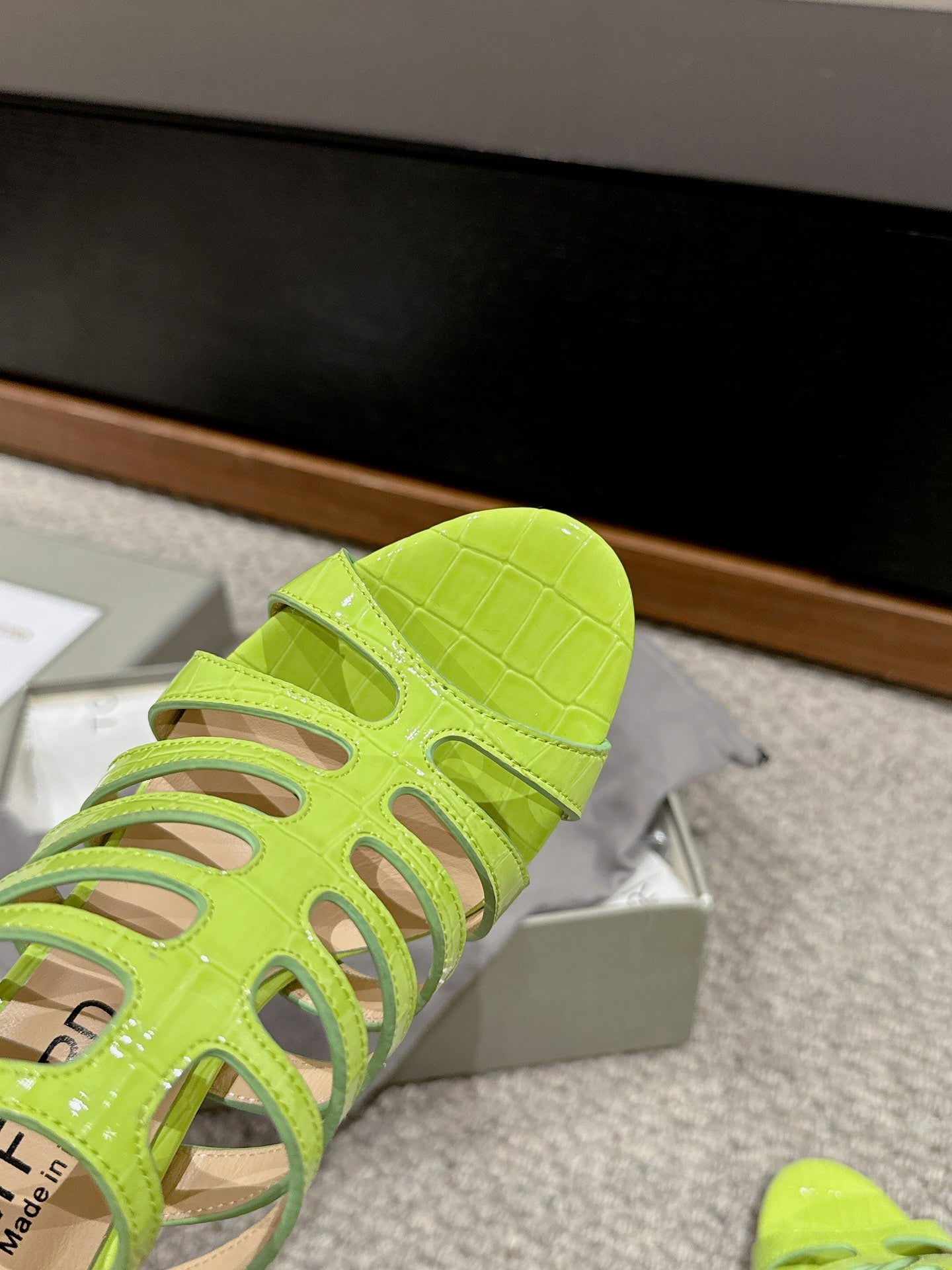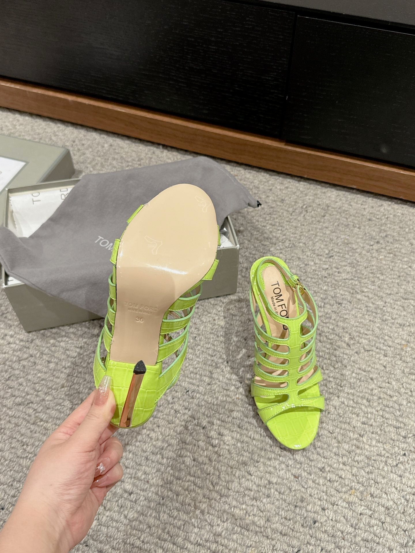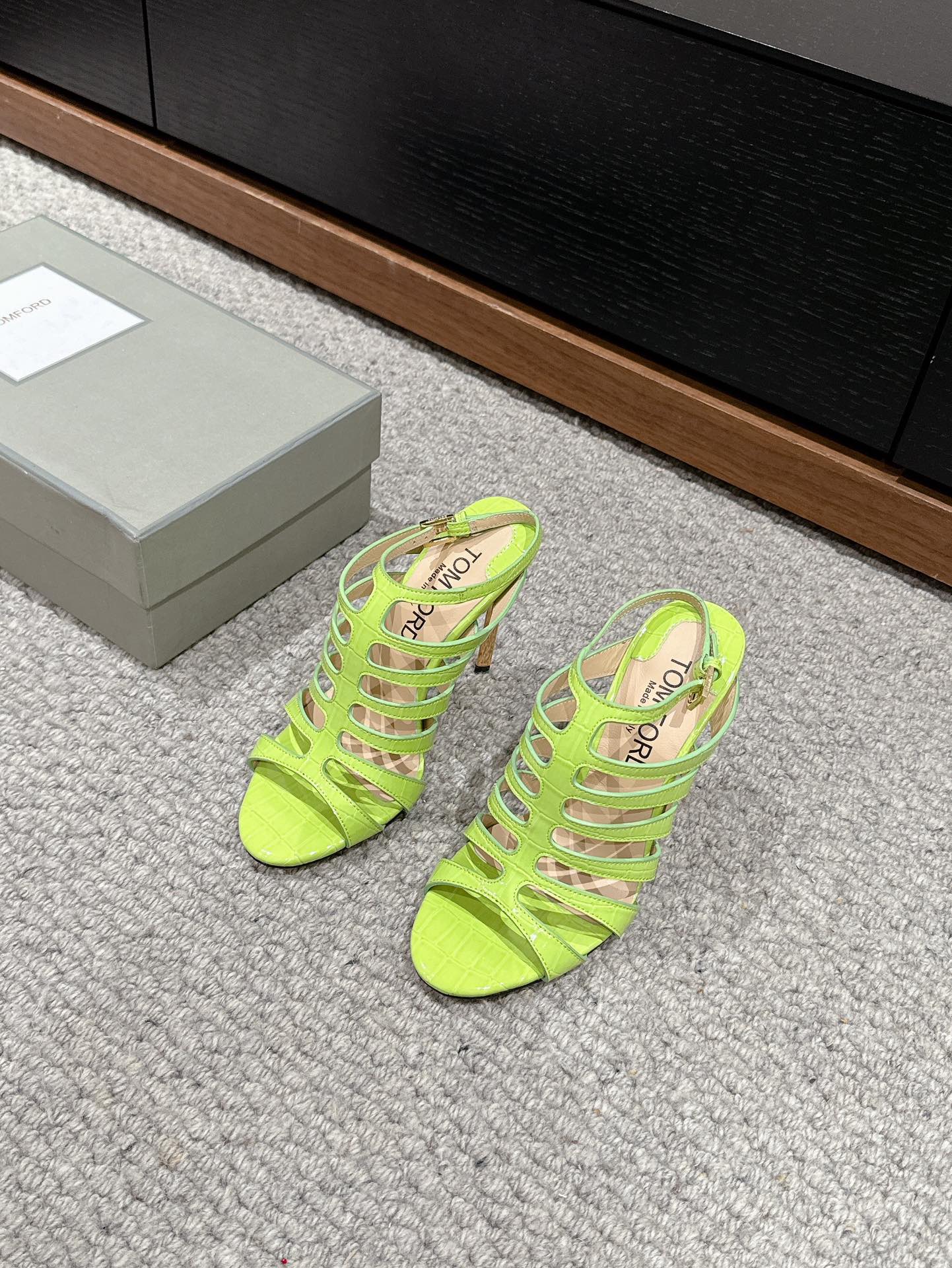 HIGH SANDAL 10 CM IN PEAR GREEN CALFSKIN