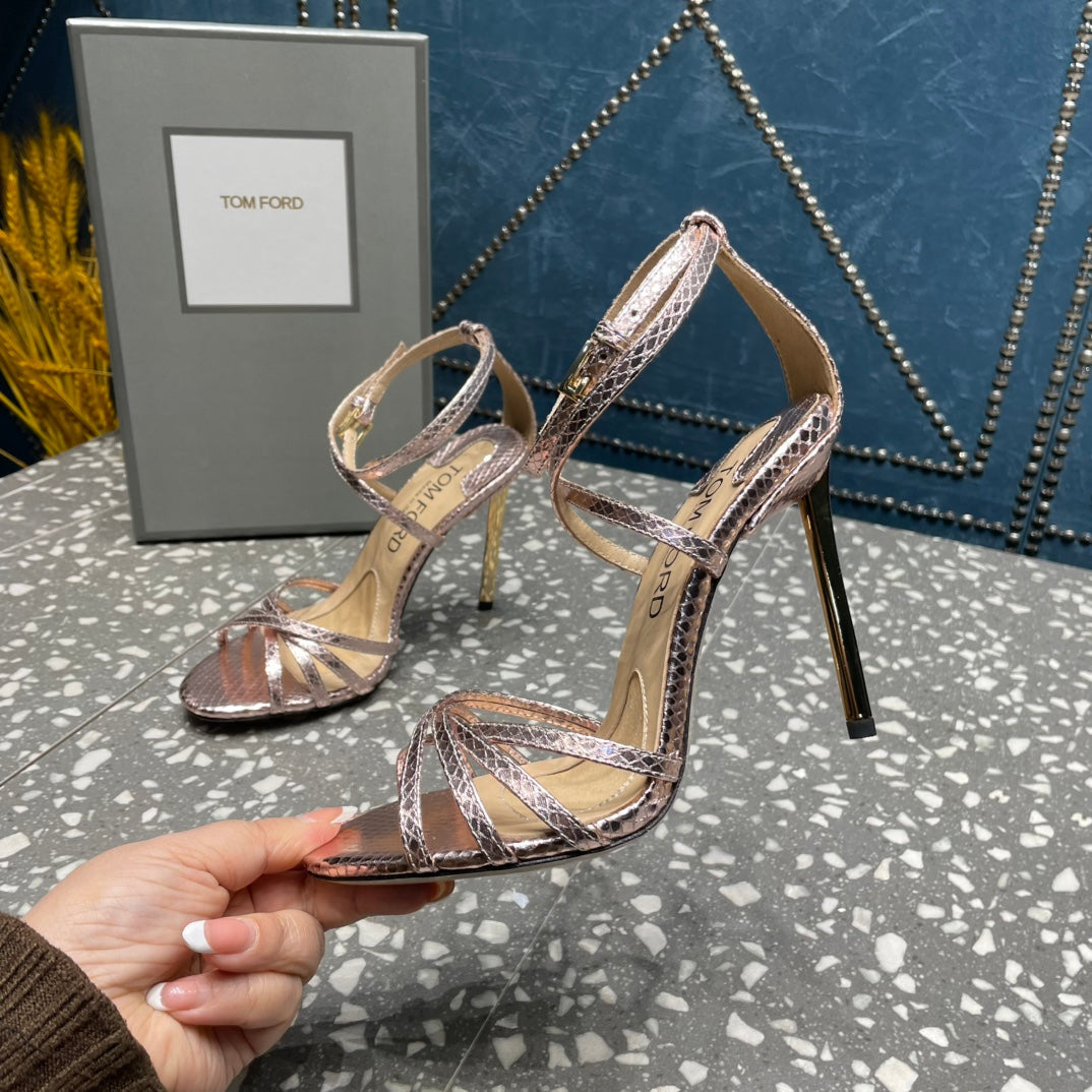 IDA SANDAL 10 CM IN COPPER SNAKE PATTERNED CALFSKIN