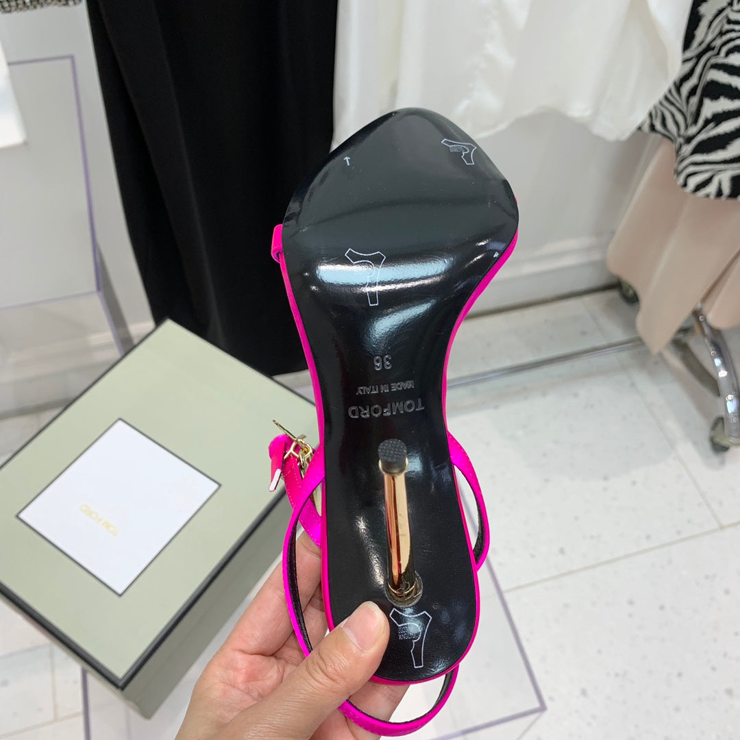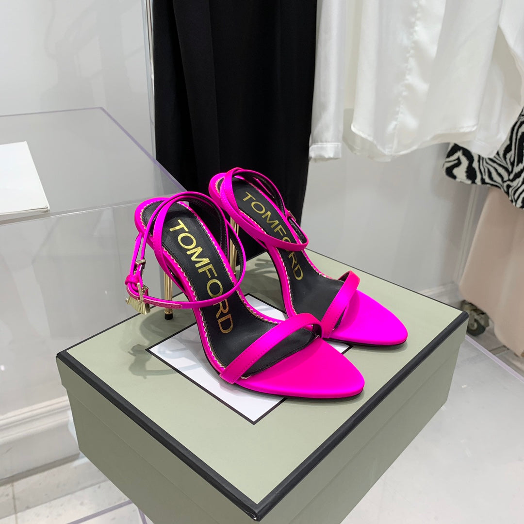 PADLOCK HIGH HEEL 10 CM SANDAL IN BRIGHT PINK SHEEPSKIN