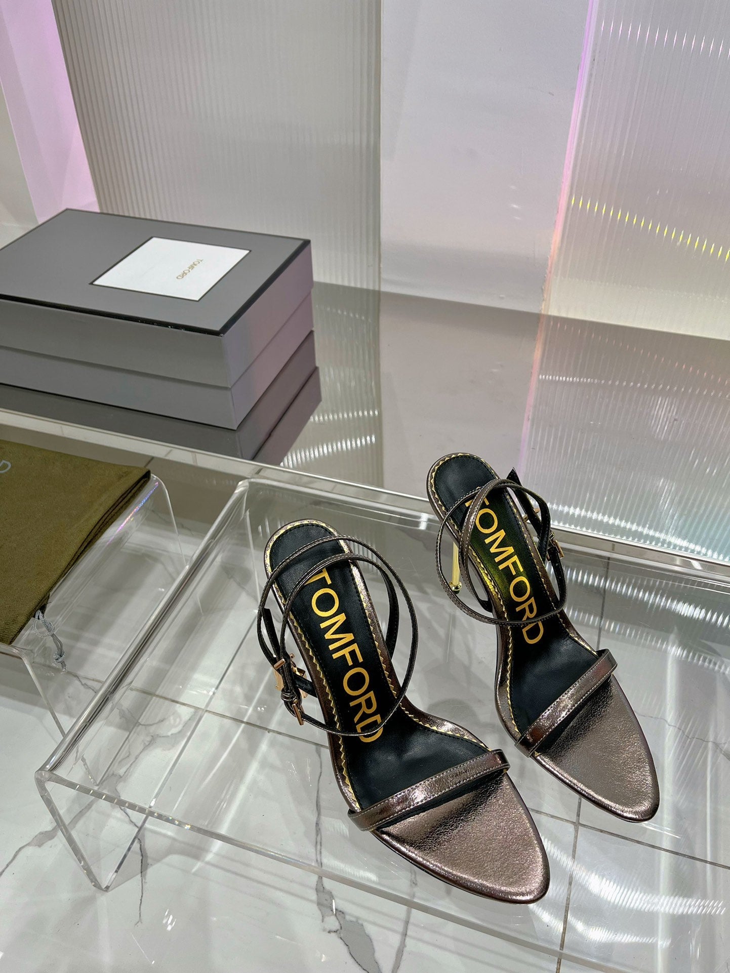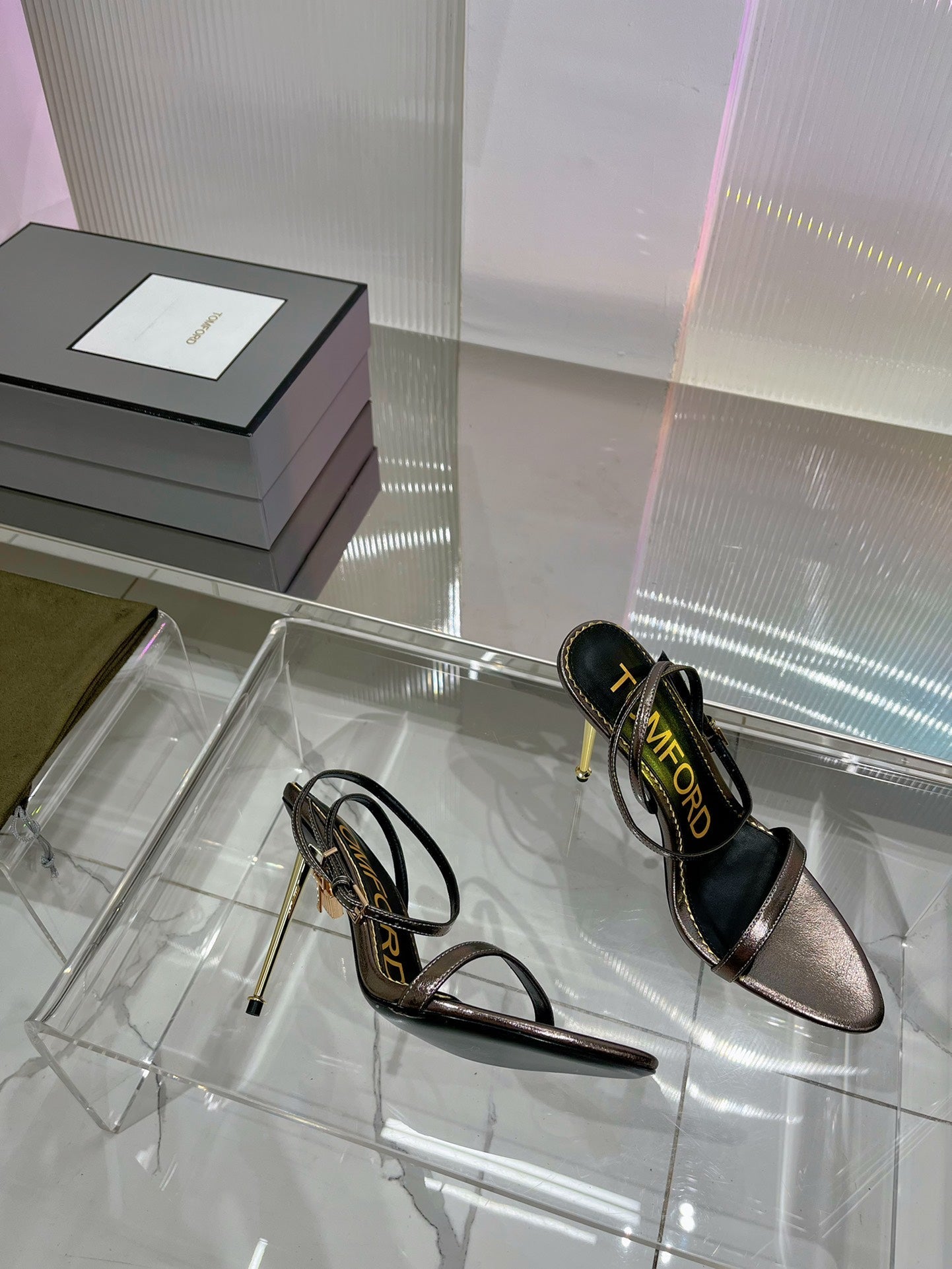 PADLOCK HIGH HEEL 10 CM SANDAL IN COFFEE BROWN SHEEPSKIN