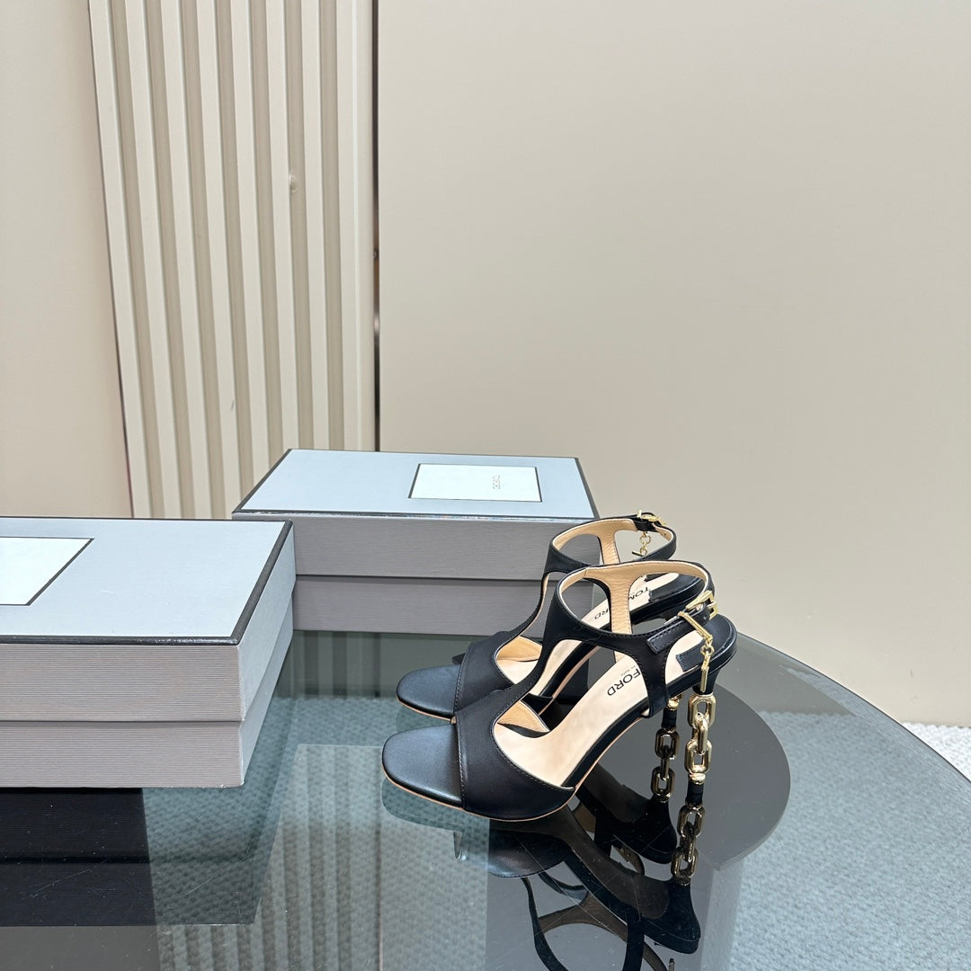 PADLOCK HIGH-HEELED SANDAL 10 CM IN BLACK CALFSKIN