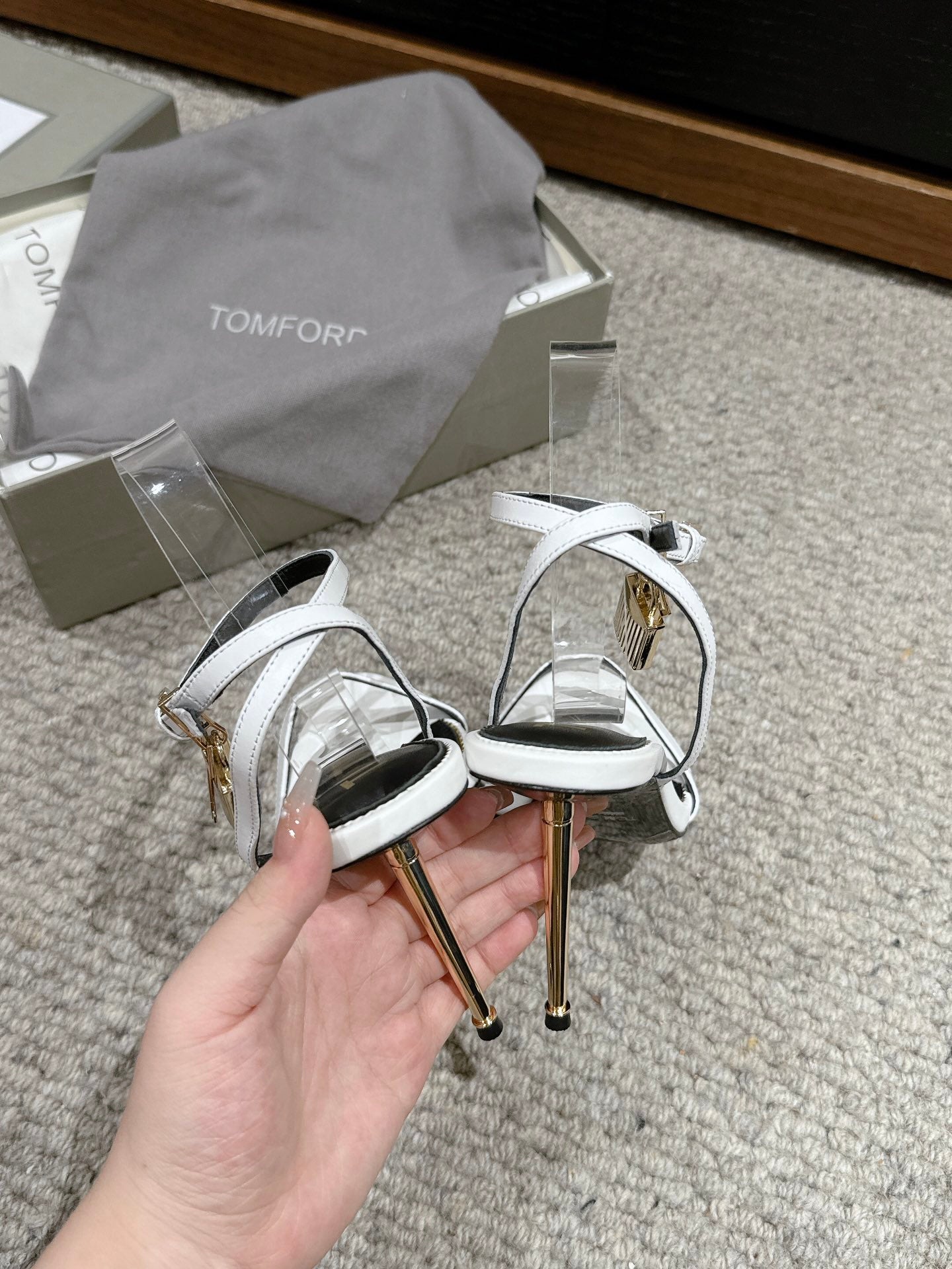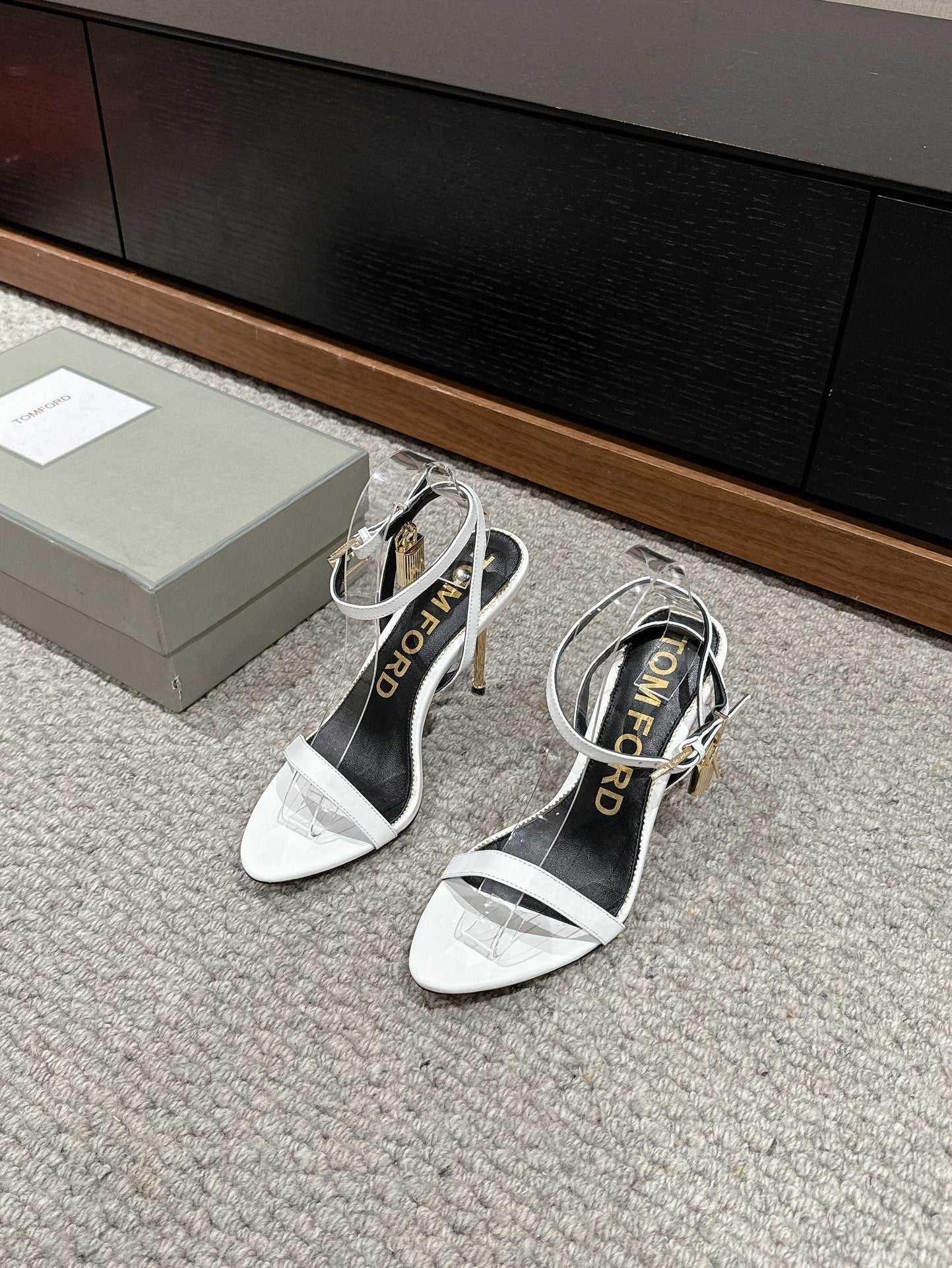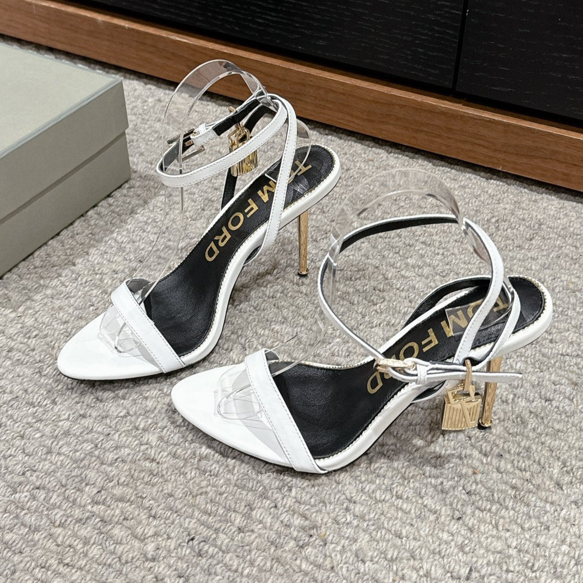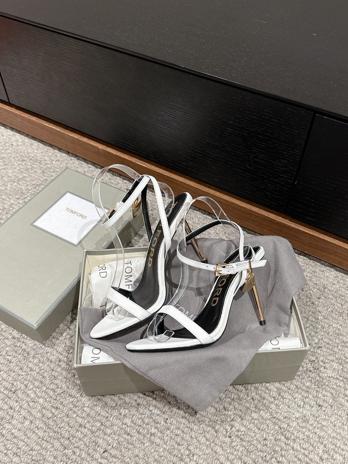 PADLOCK POINTY NAKED SANDAL 85 MM IN WHITE CALFSKIN