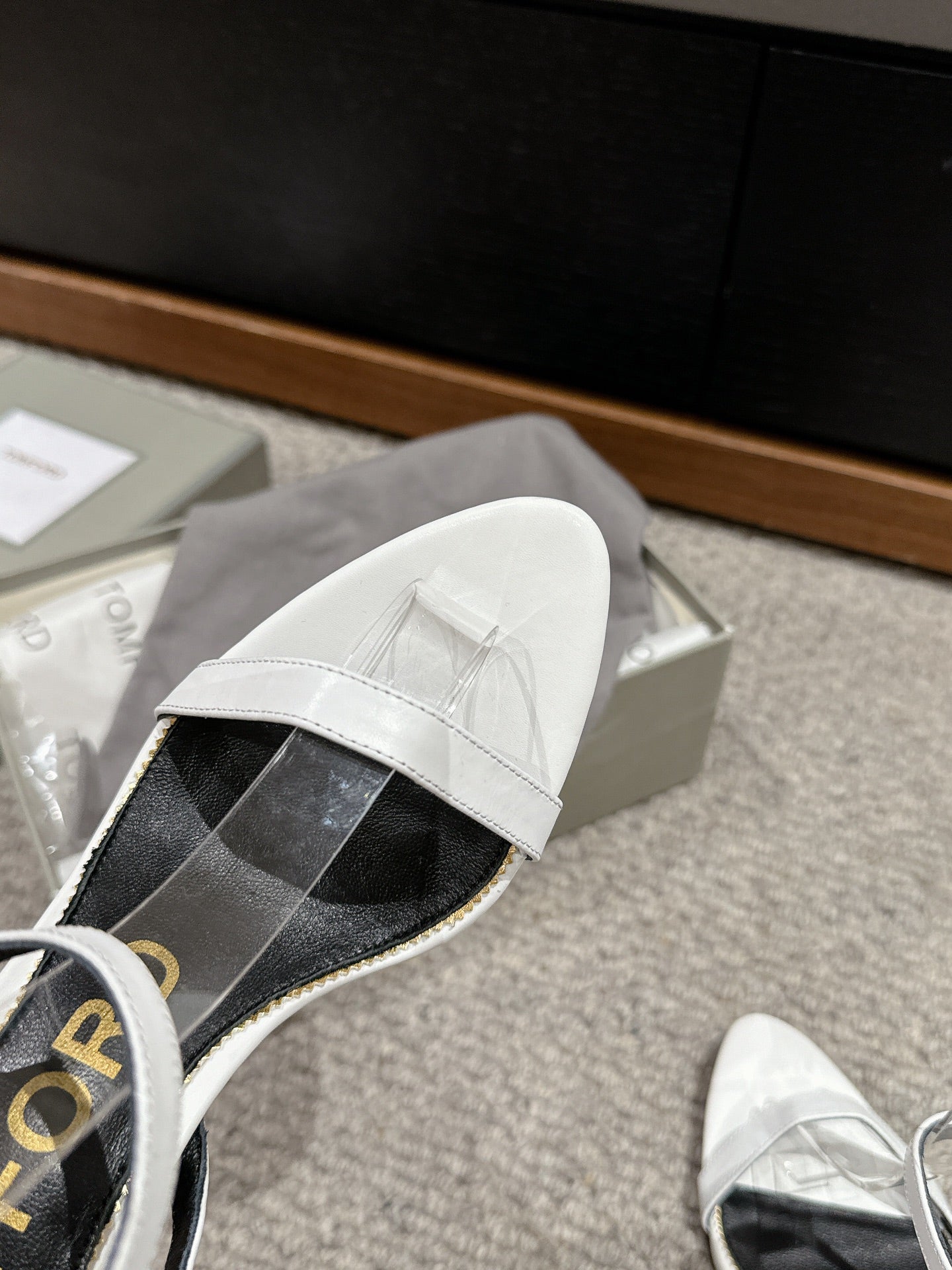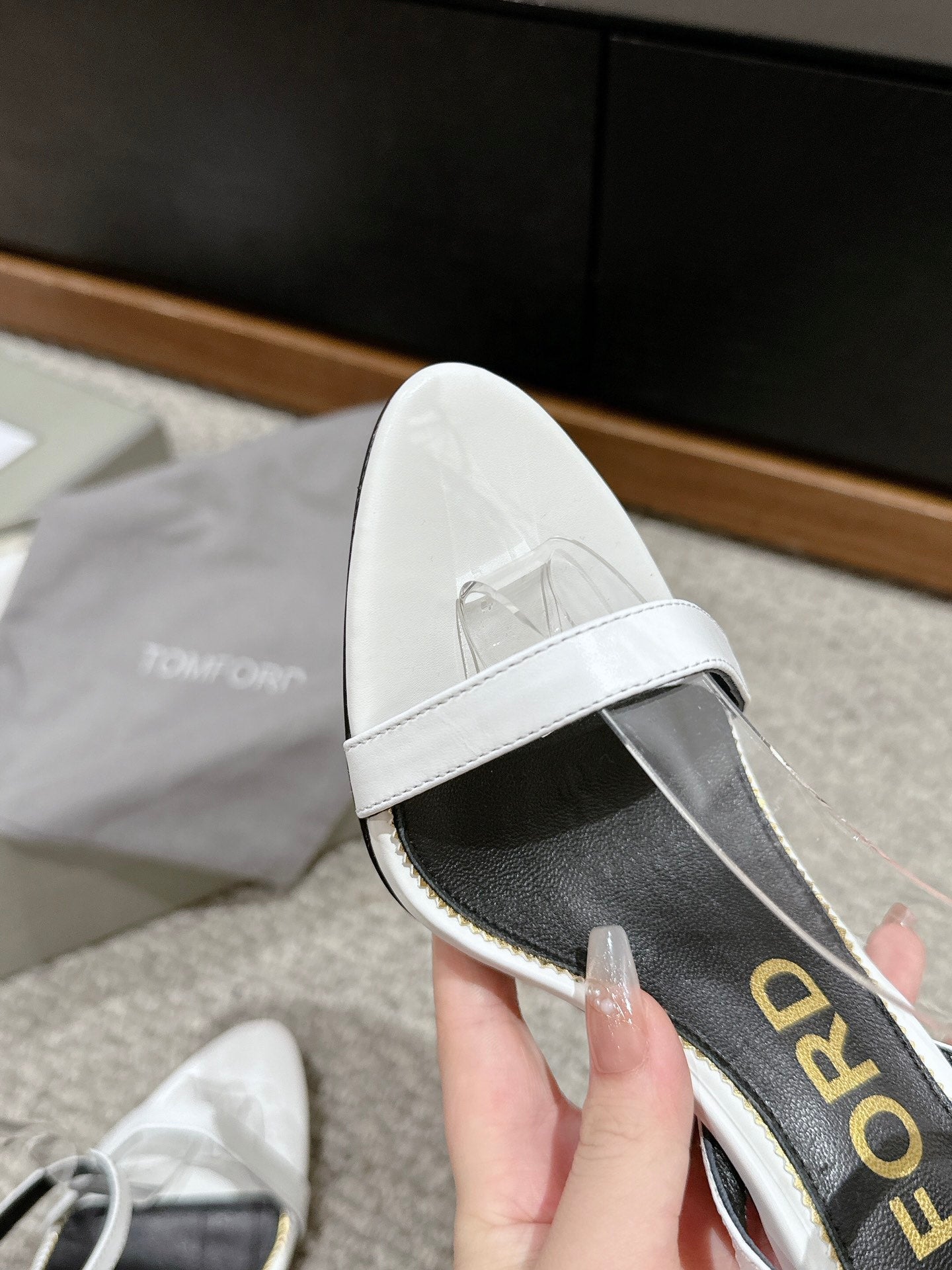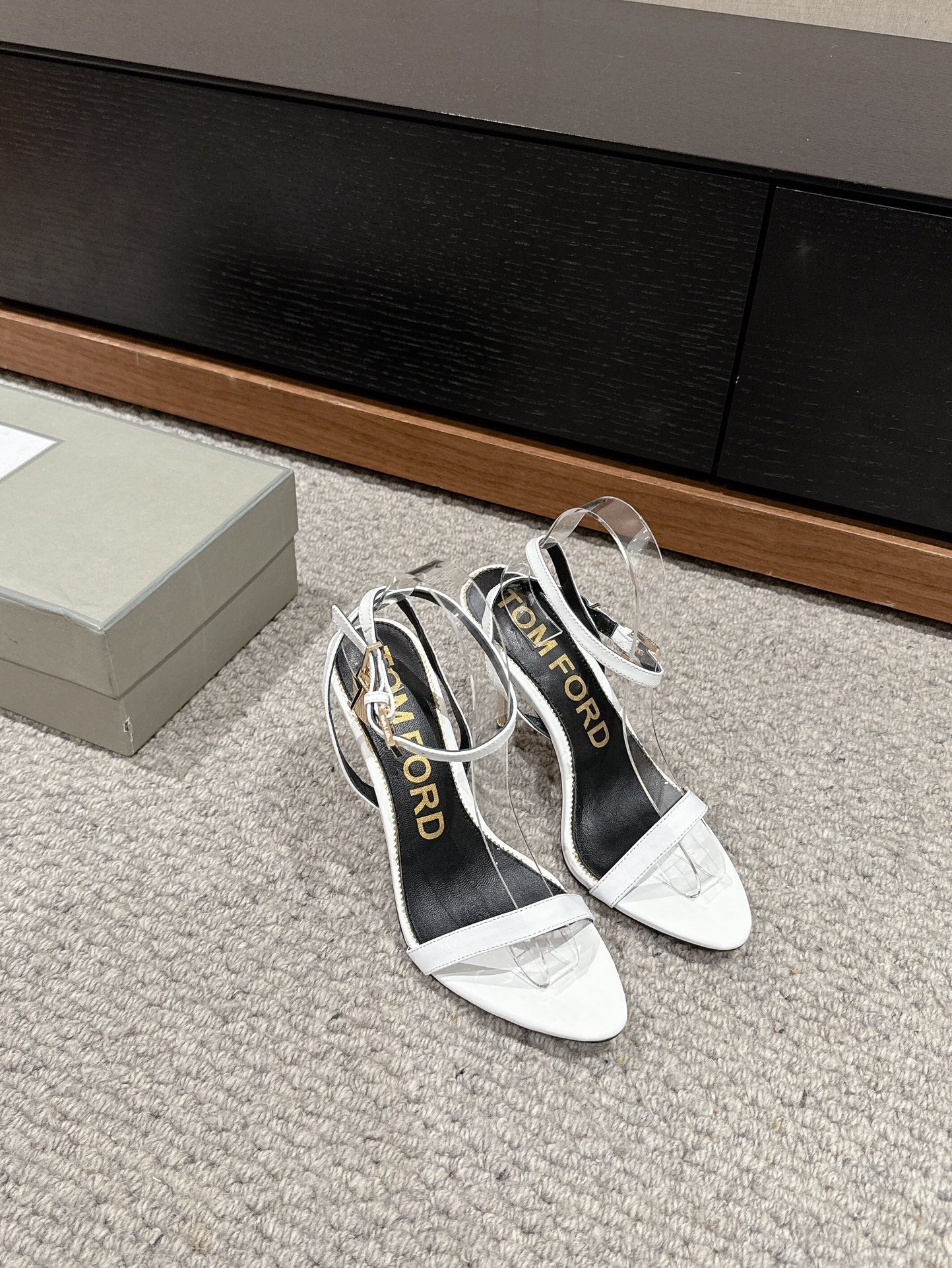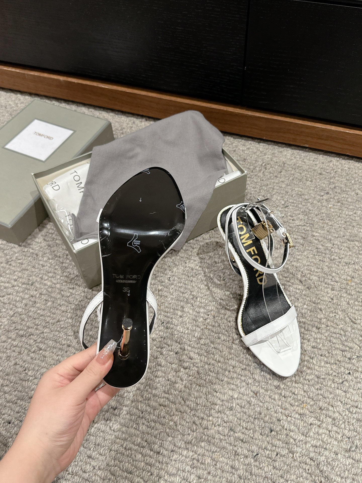 PADLOCK POINTY NAKED SANDAL 85 MM IN WHITE CALFSKIN