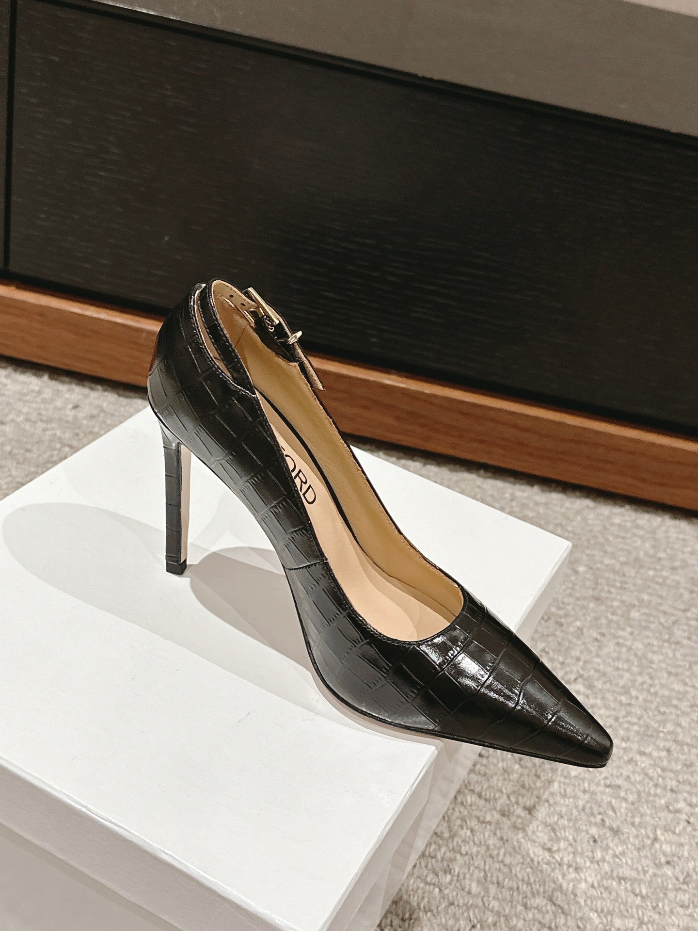 STAMPED CROCODILE LEATHER ANGELINA PUMP BLACK