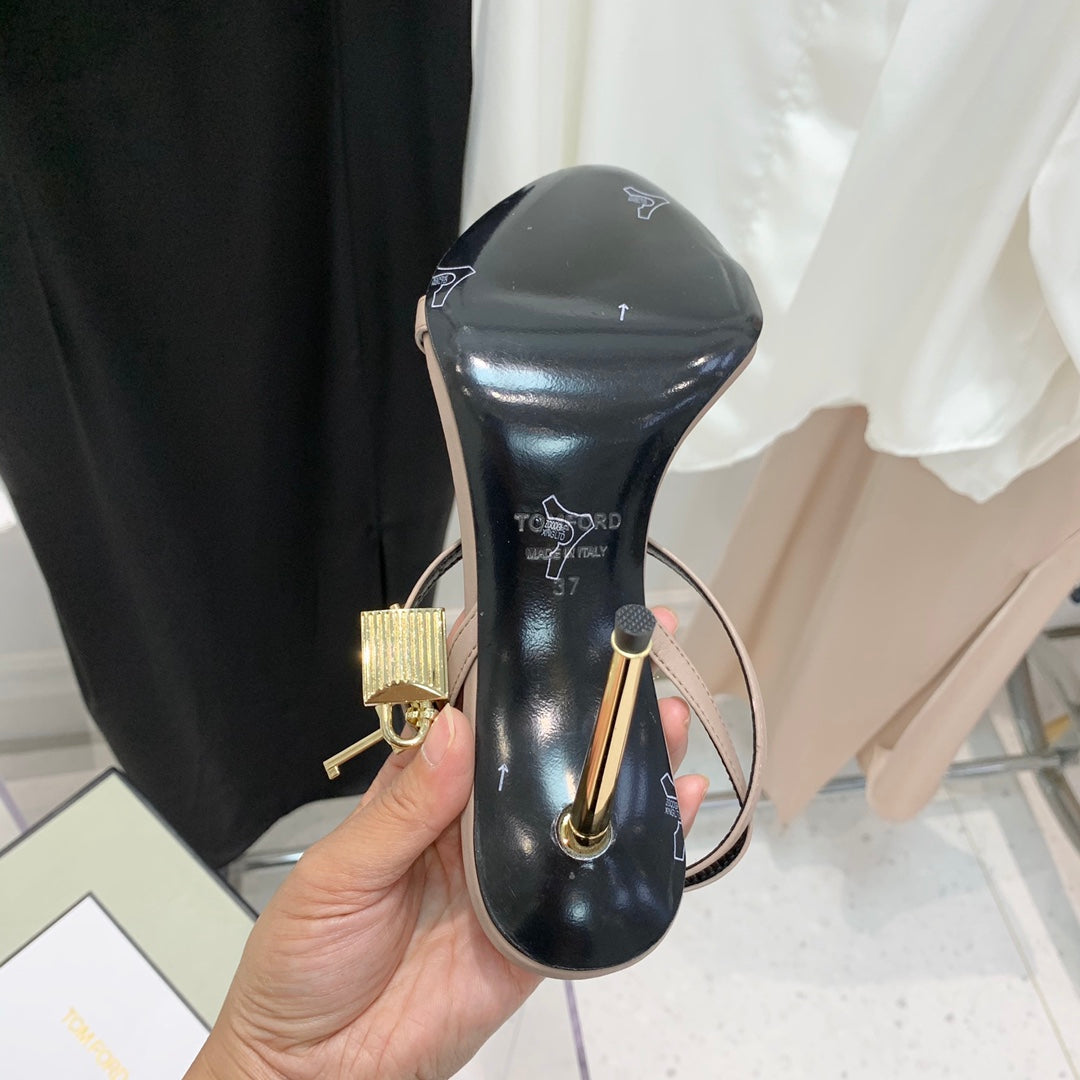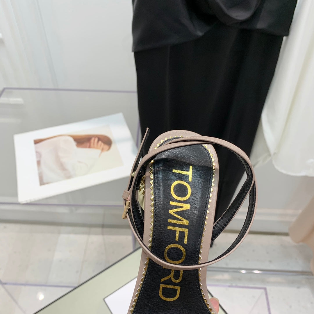 TOM FORD 26S GOLD BUCKLE HEELS 105 MM IN NUDE BEIGE LAMBSKIN