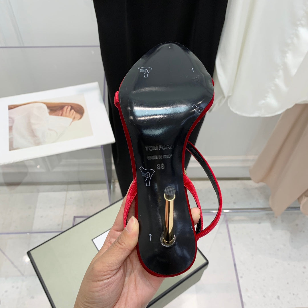 TOM FORD 26S GOLD BUCKLE HEELS 105 MM IN RED VELVET