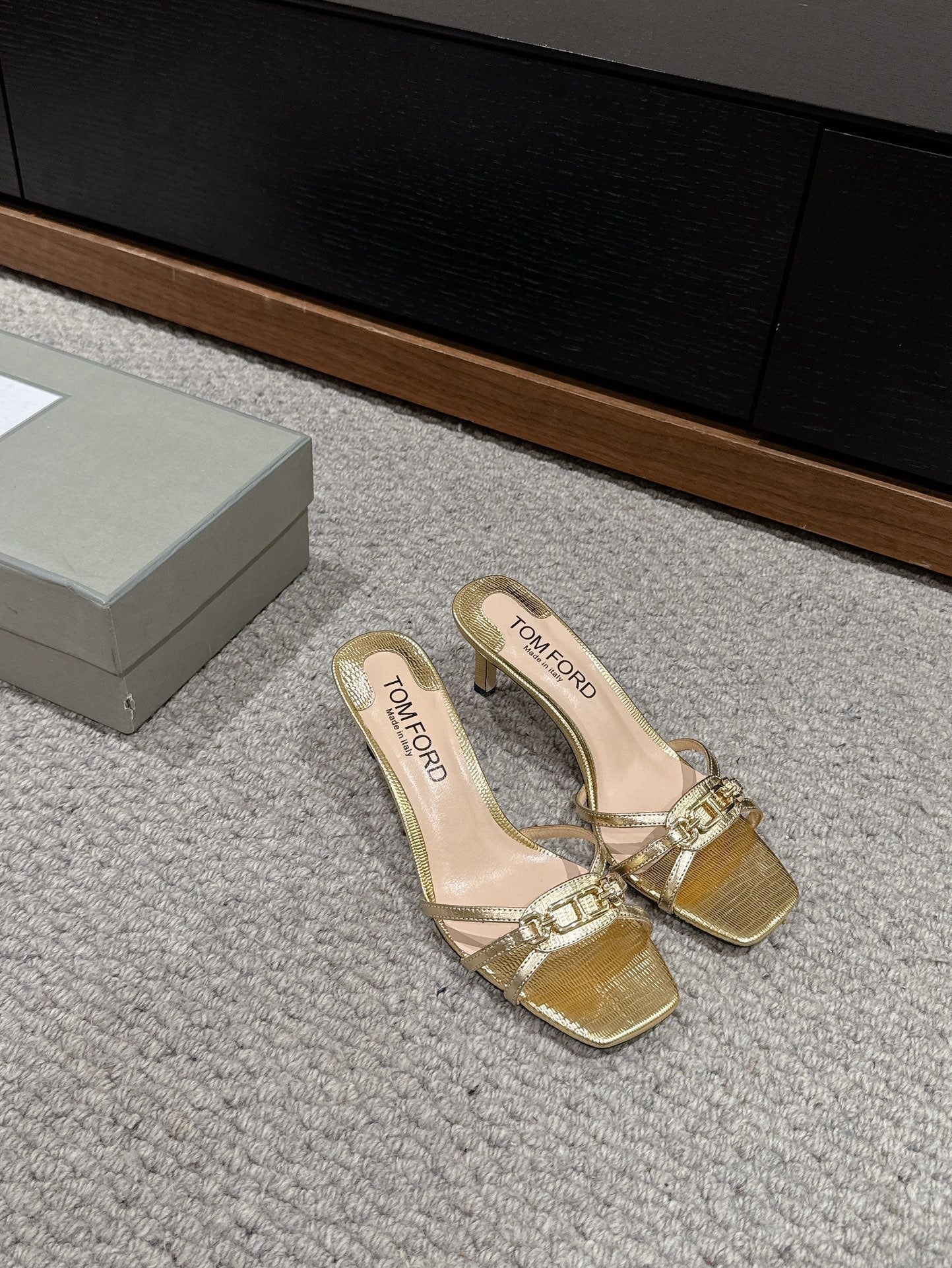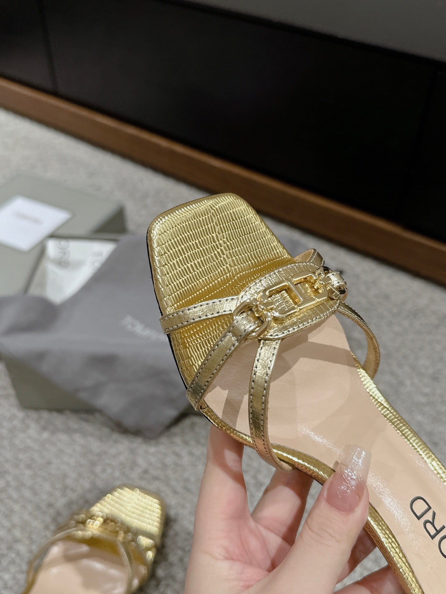 WHITNEY HIGH 6 CM MULE IN GOLD CROCODILE LEATHER
