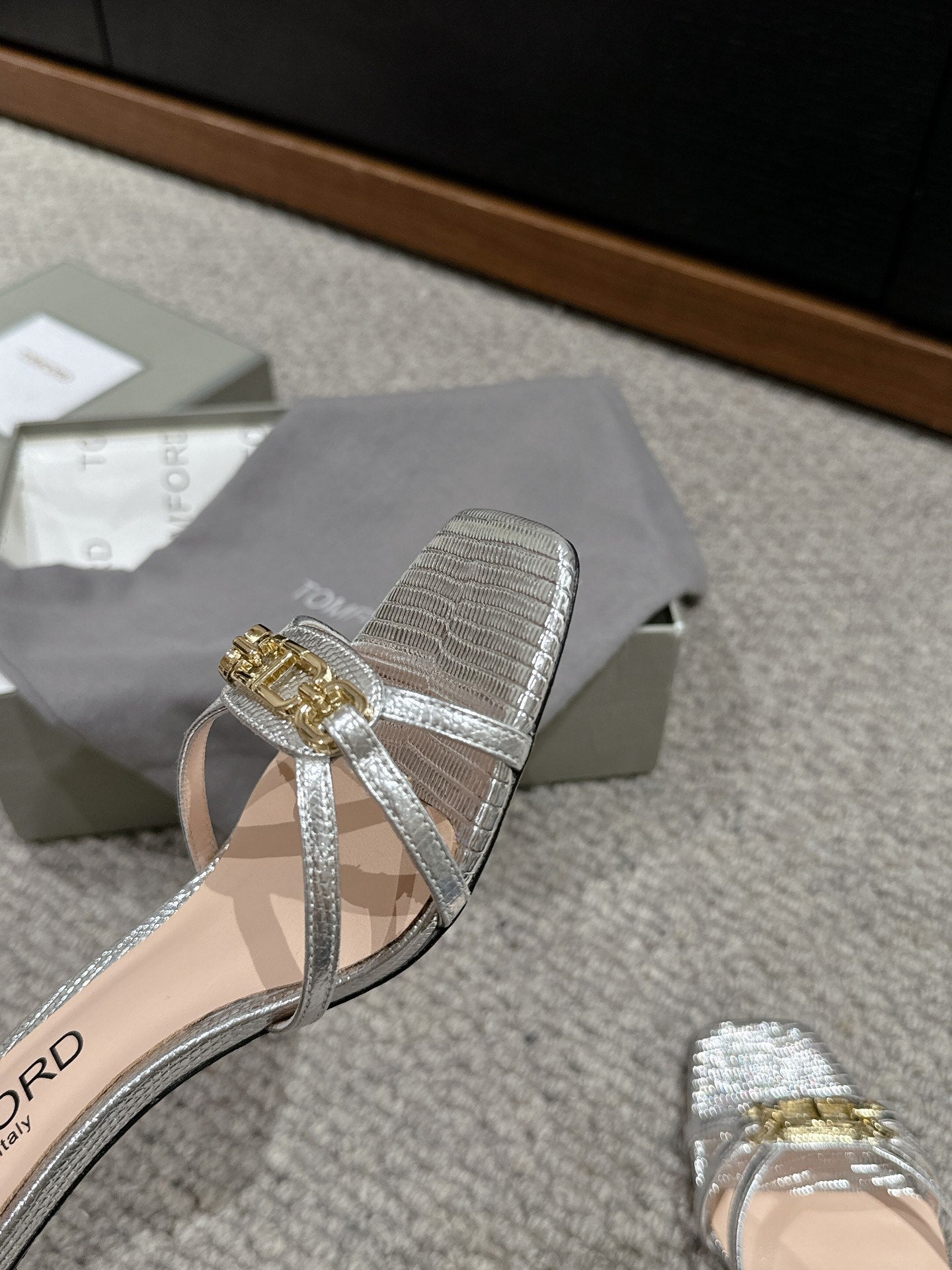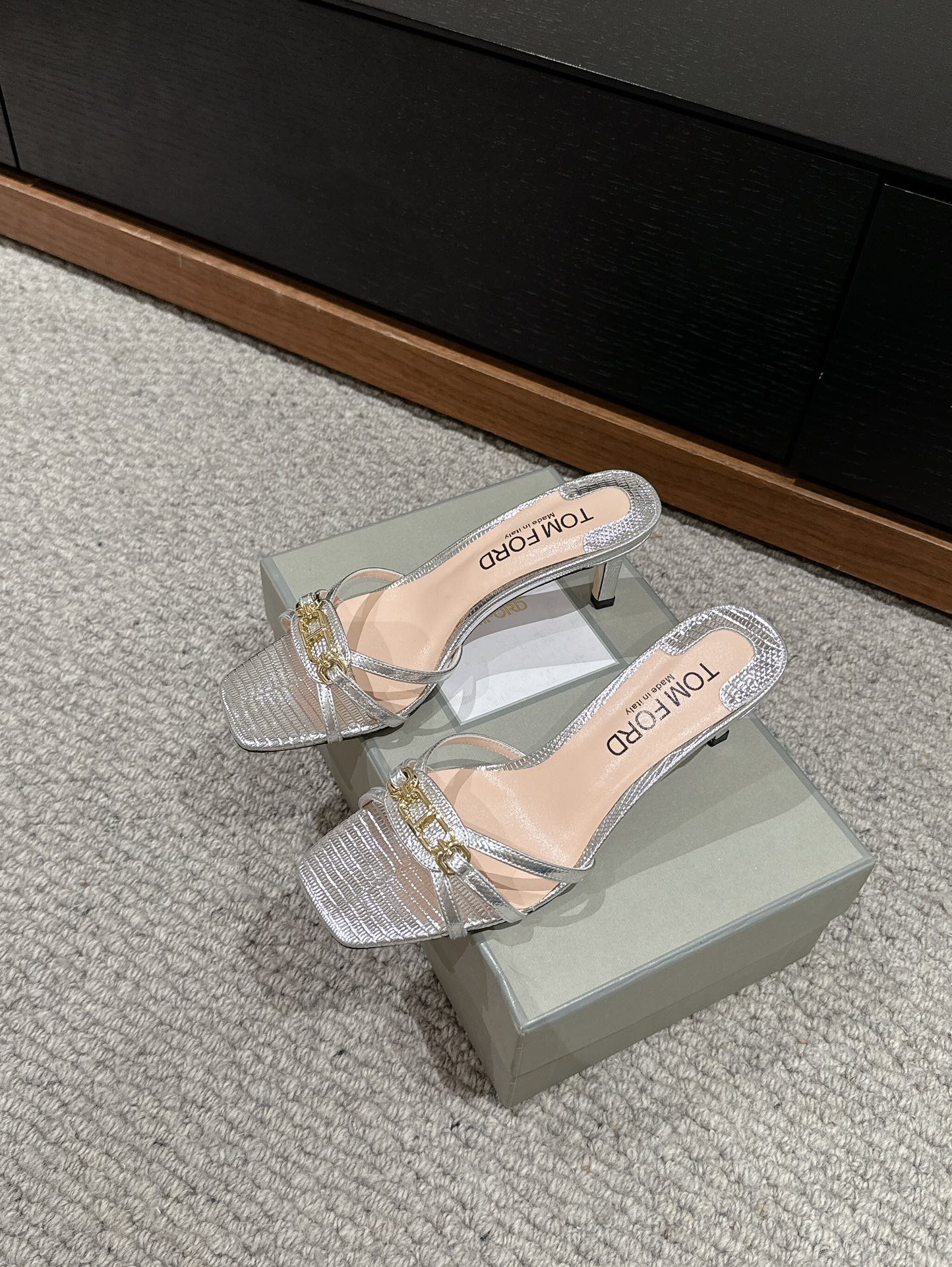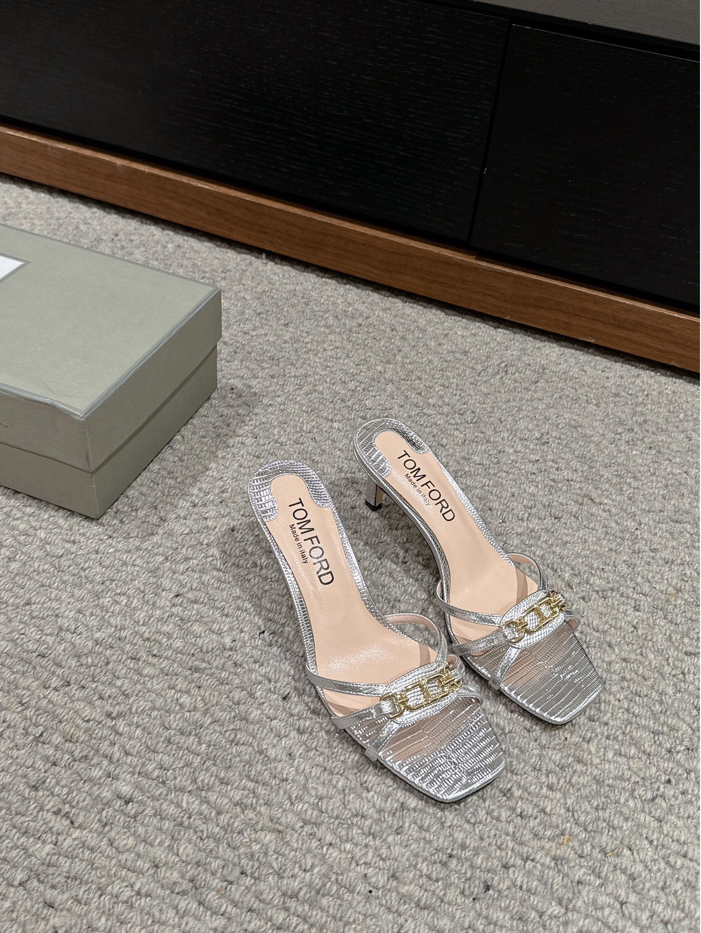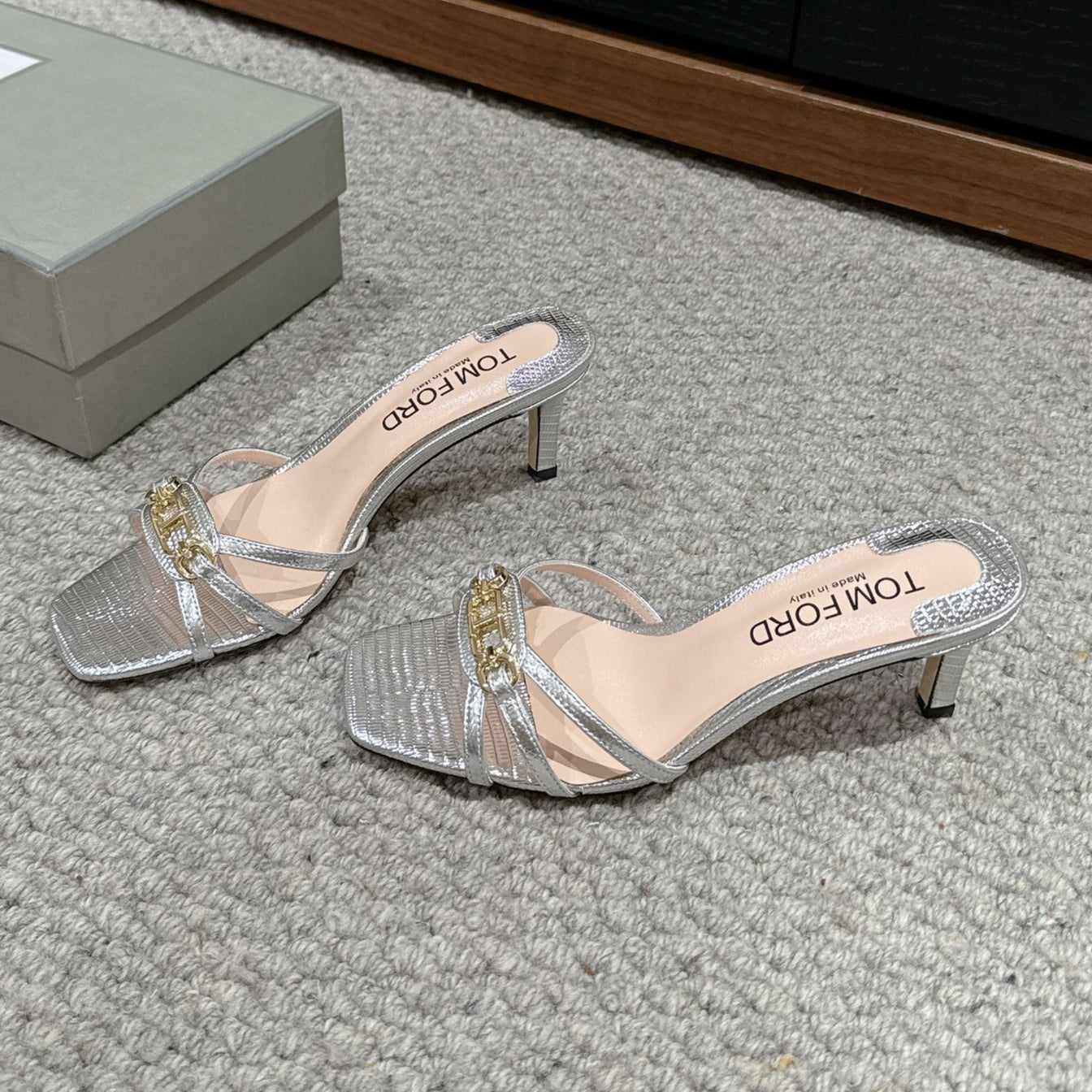 WHITNEY HIGH 6 CM MULE IN SILVER CROCODILE LEATHER
