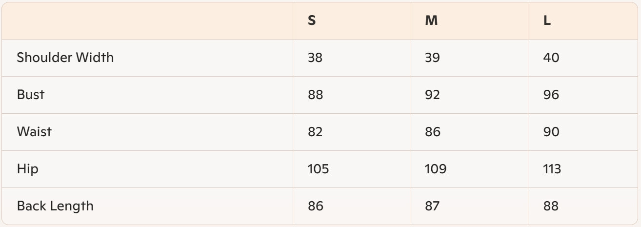 • Size: S, M, L